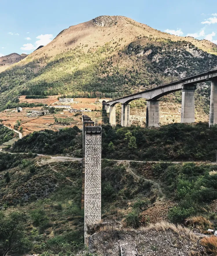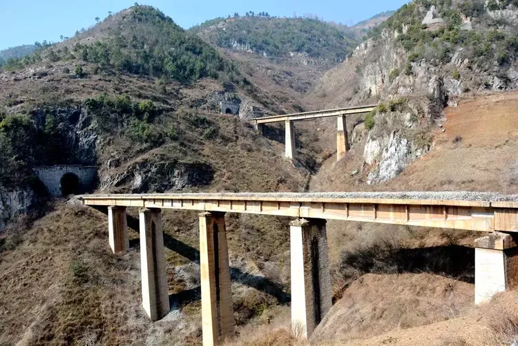 1958—1966年,铁道兵将士与十万民工以血肉之躯战天斗地,在乌蒙深山凿出这段克服150米高差、呈三层S形盘旋的“奇迹展线”,21隧30桥桥隧相连、洞上有洞,造就“桥上有桥、人走比车快”的奇观;天生桥特大桥架于天然溶洞之上,作为当时全国首座钢塔铁路桥,成为西南大动脉的咽喉工程,凝聚着建设者的智慧与担当。