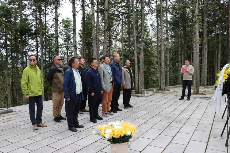 全体人员手持鲜花列队绕行纪念碑一周,深切缅怀和寄托对英烈们的哀思之情。