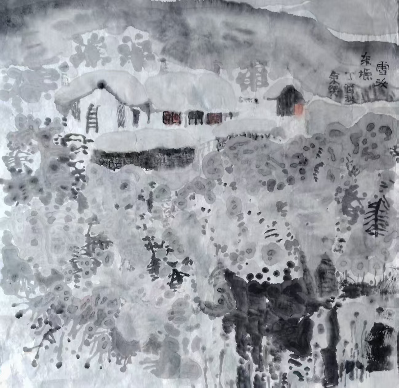 国画《春雪》69x69cm 2026