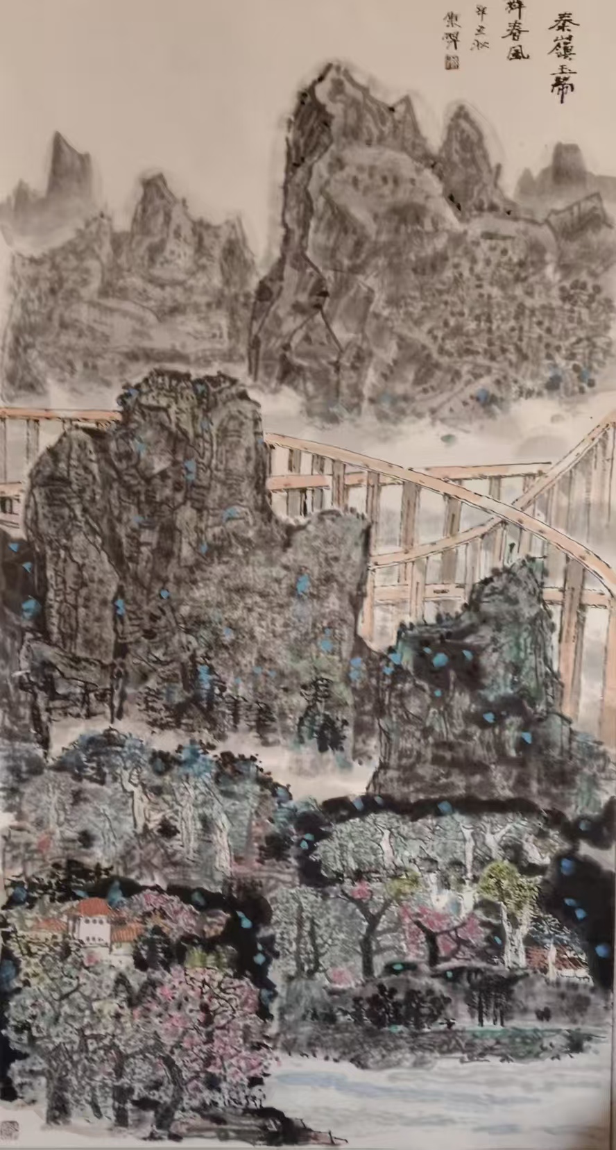 国画《秦岭玉带舞春风》138x69cm 2026