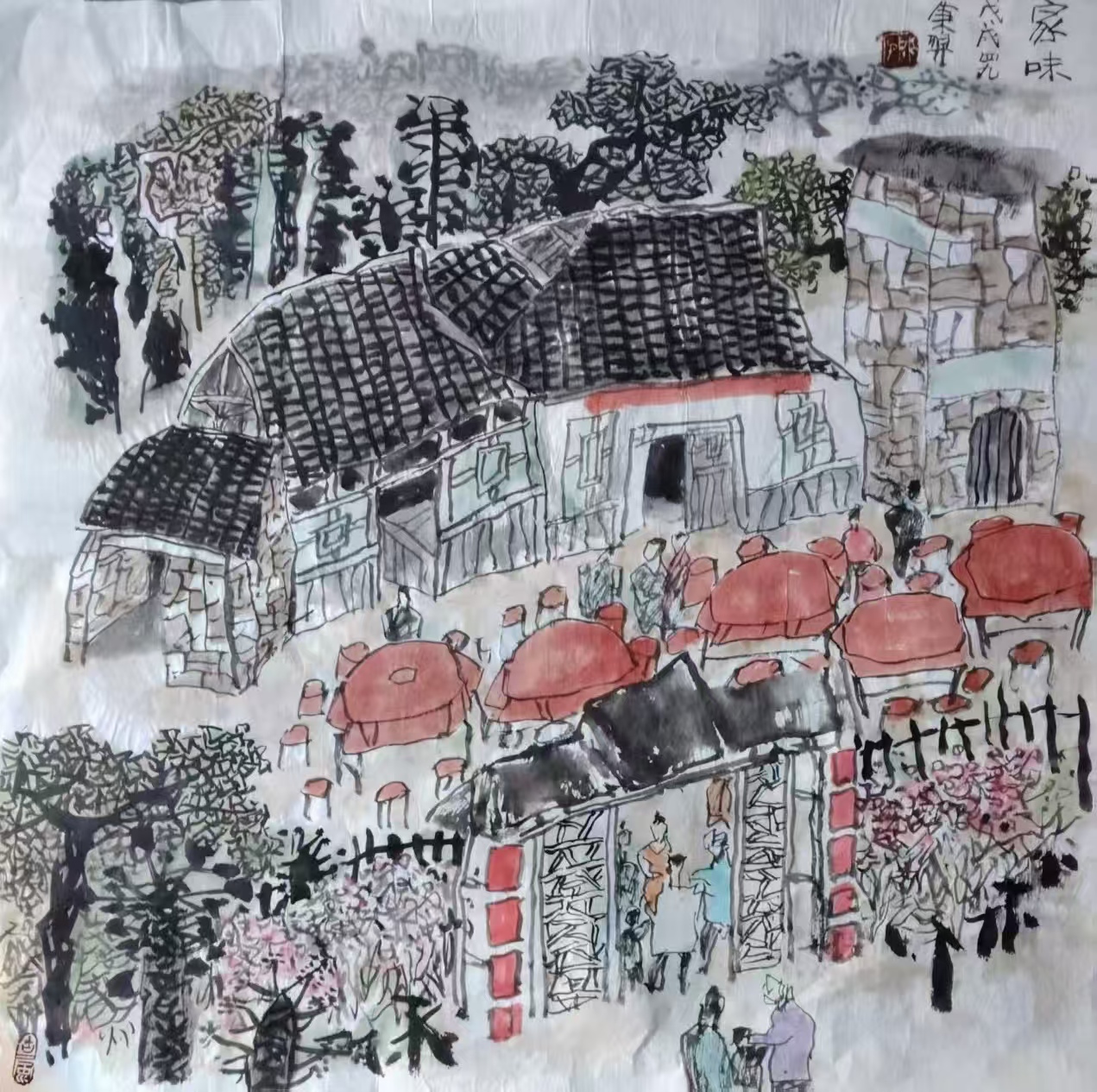 国画《家宴》69x69cm 2026
