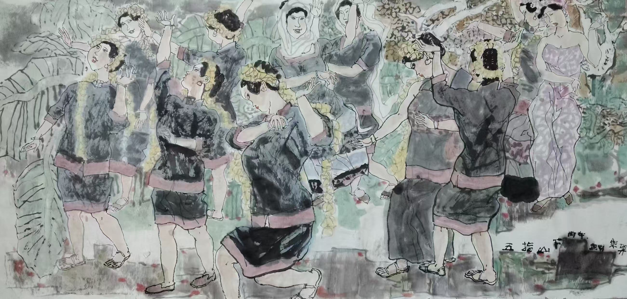 国画《五指山下响情歌》138x69cm 2026