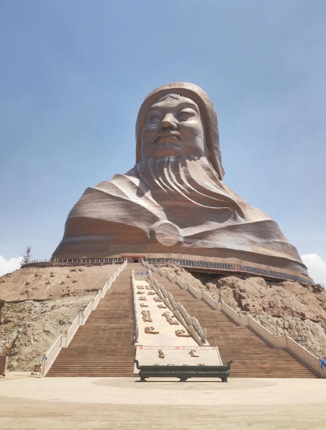在乌海市的甘德尔山上,矗立着一座令人震撼的成吉思汗雕像。这座雕像是世界上最大的成吉思汗雕像,雕像总高88.95米,由35000块铜板拼焊而成。