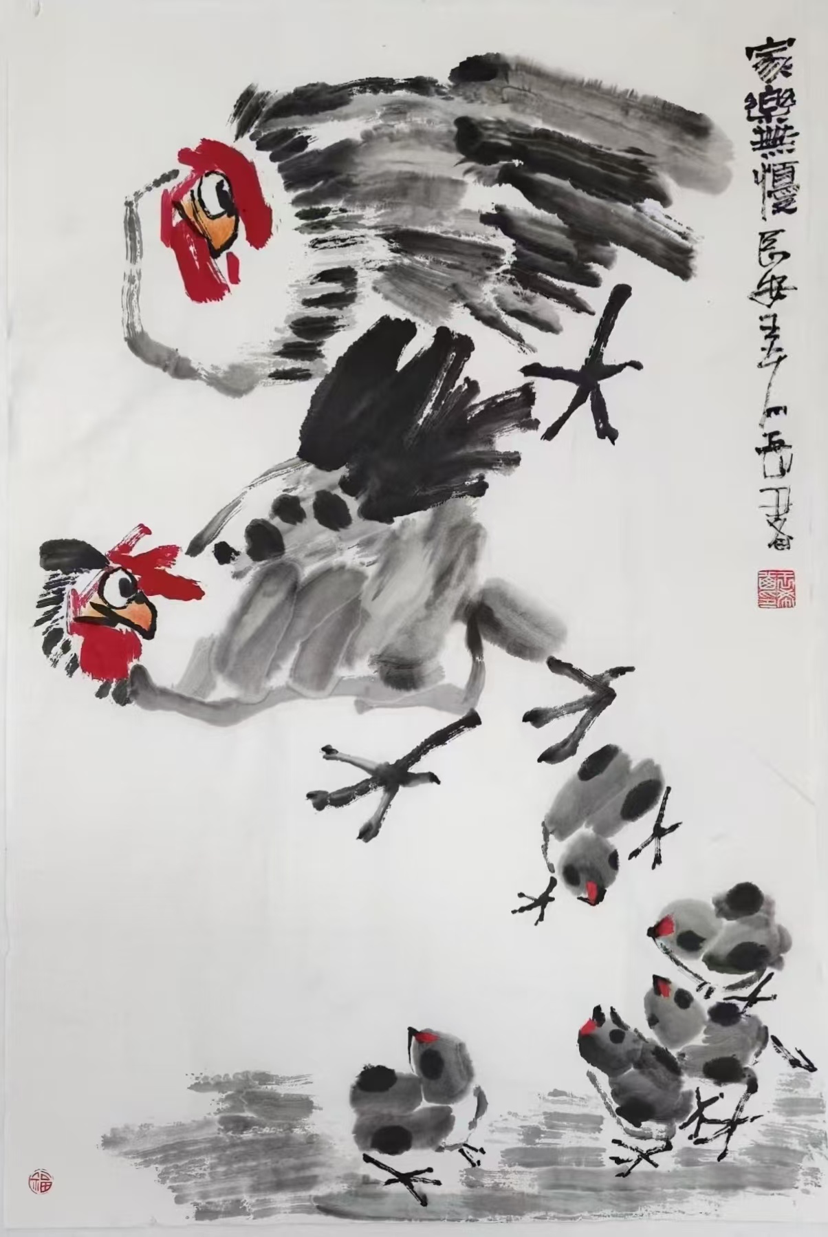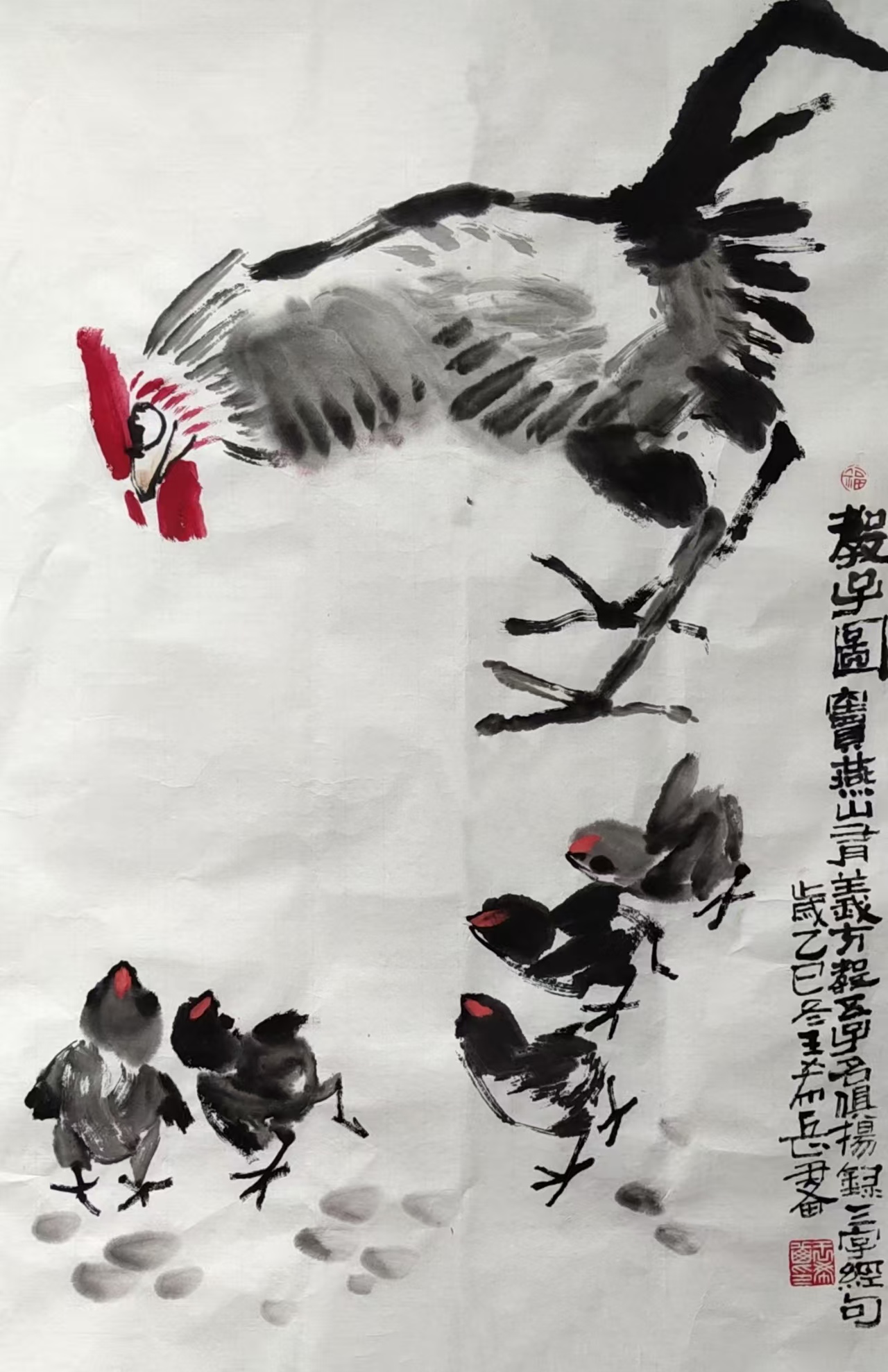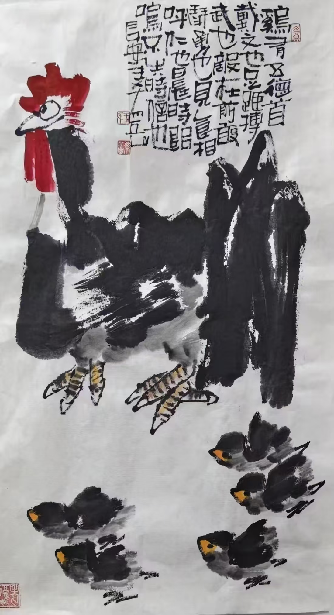 写意花鸟画 《鸡有五德》69x46cm 2025