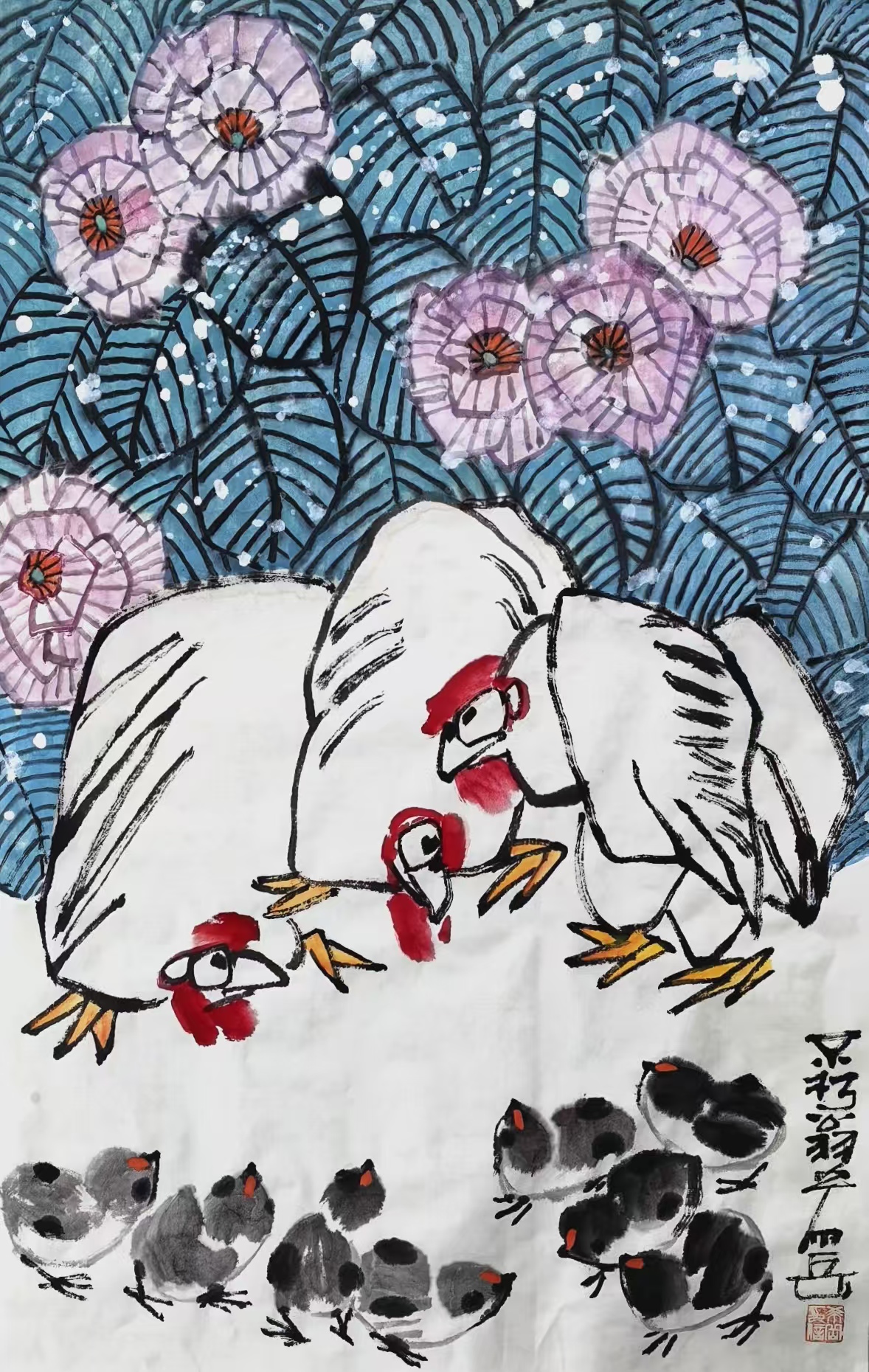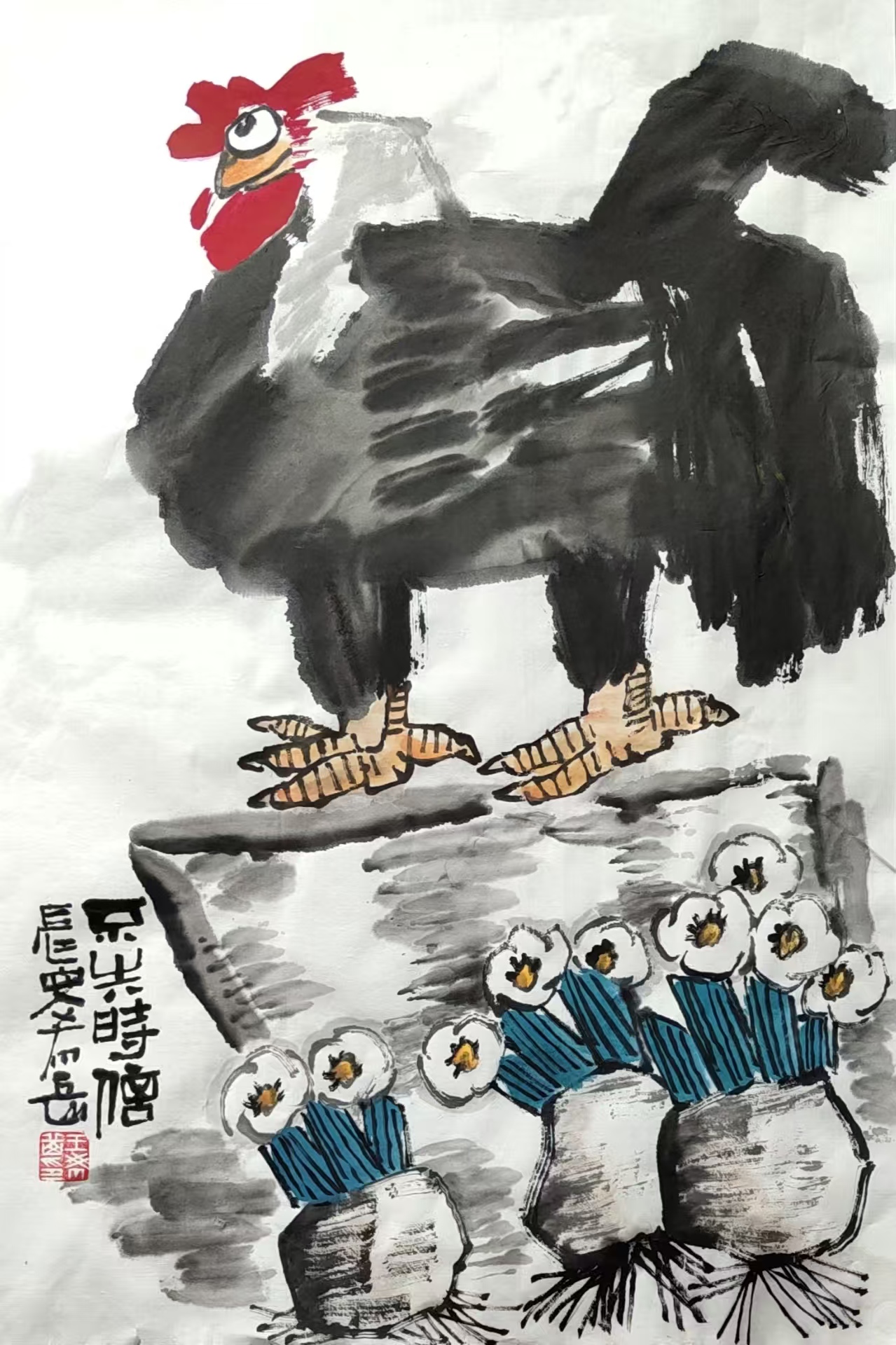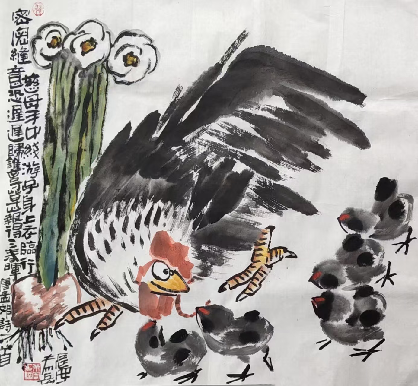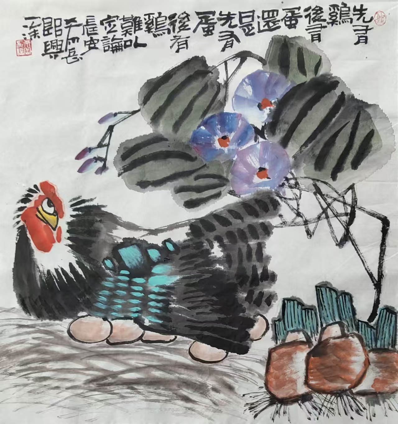 写意花鸟画《先有鸡后有蛋 还是先有蛋后有鸡难以定论》69x69cm 2025