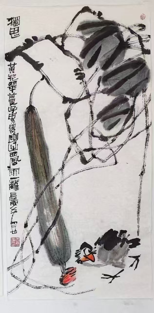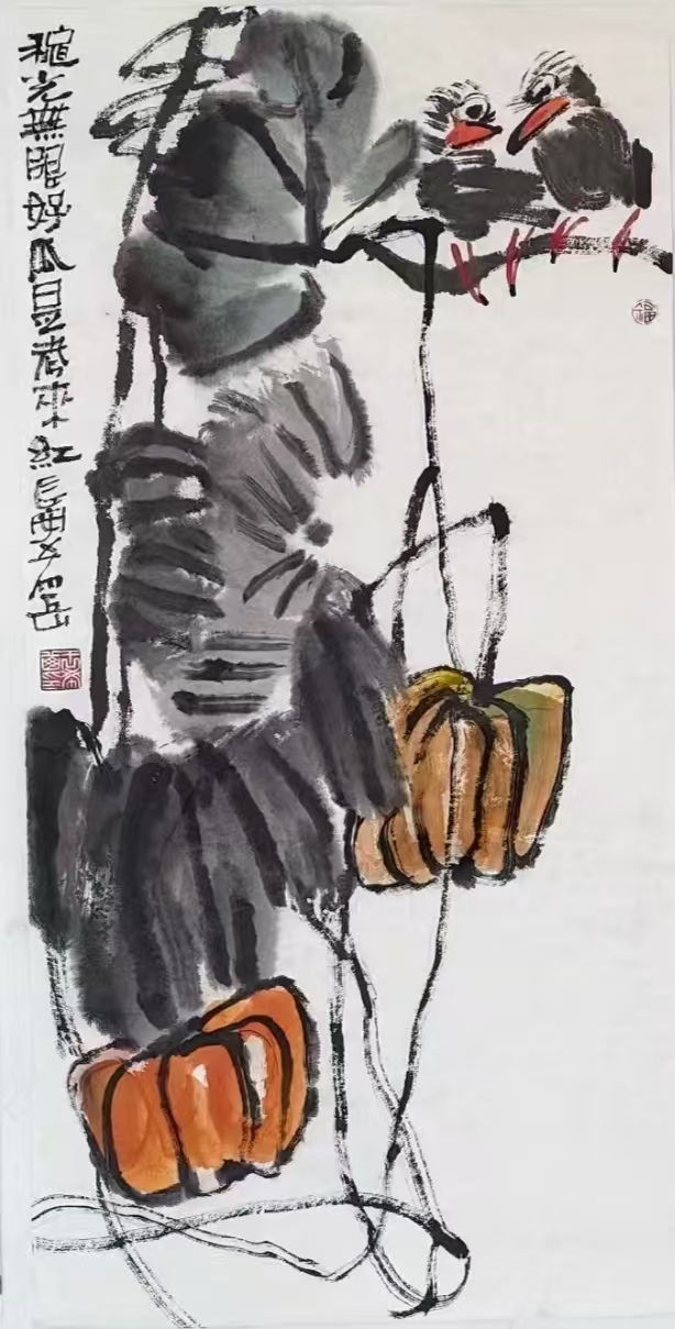 写意花鸟画《秋光无限好瓜是老来红》69x46cm 2025