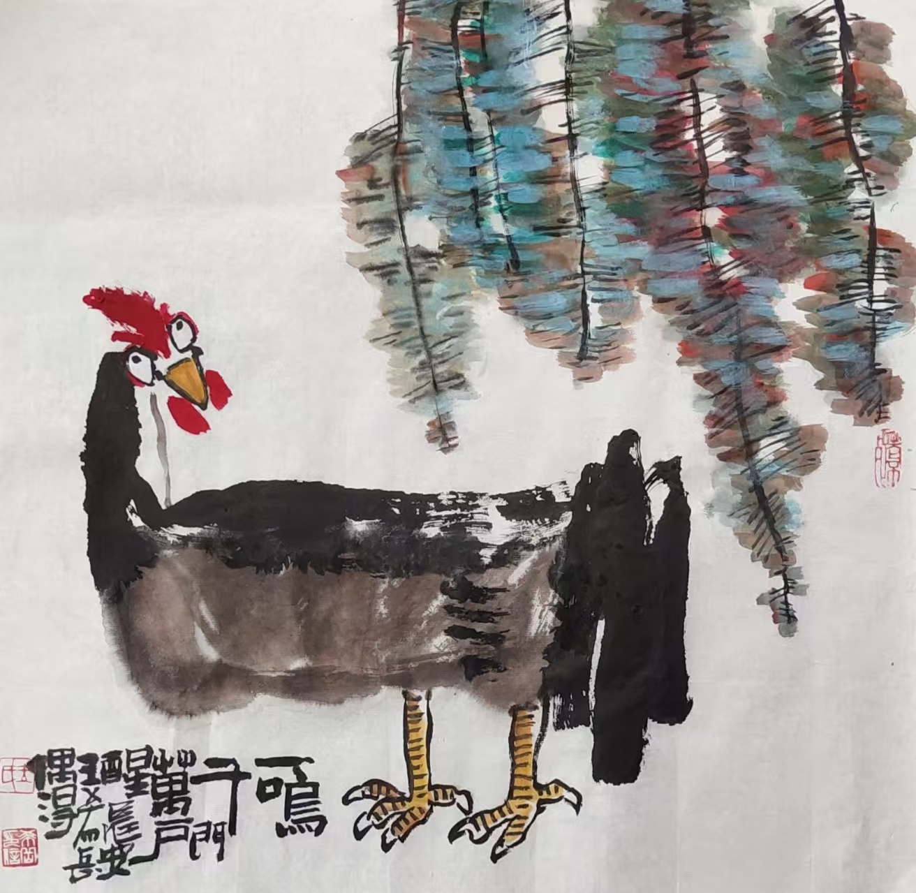 写意花鸟画《一鸣千门万户醒》69x69cm 2025