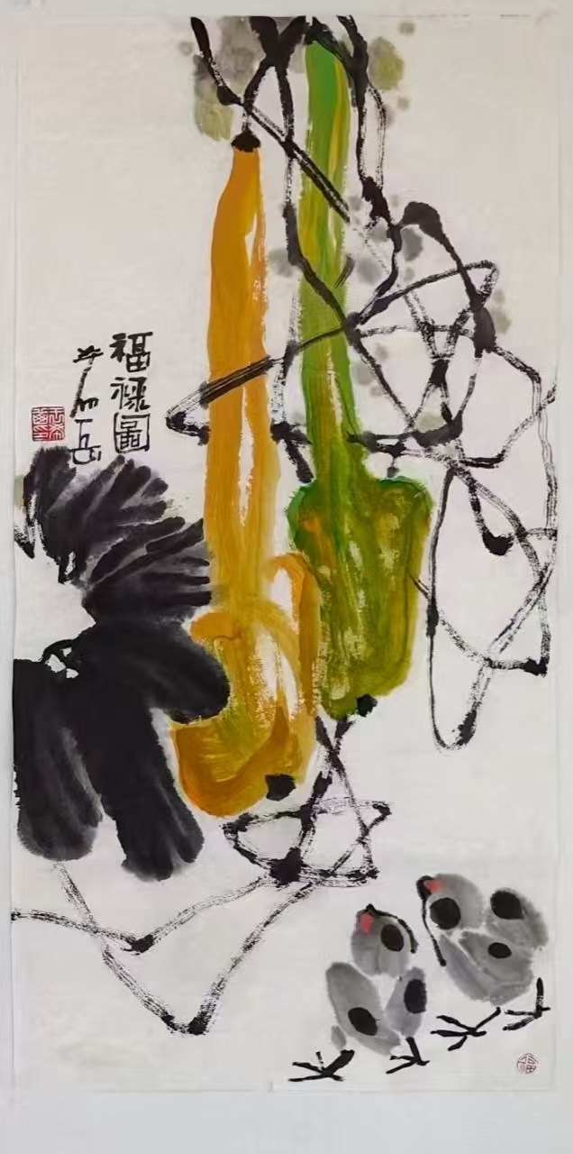 写意花鸟画《福禄图》69x46cm 2025