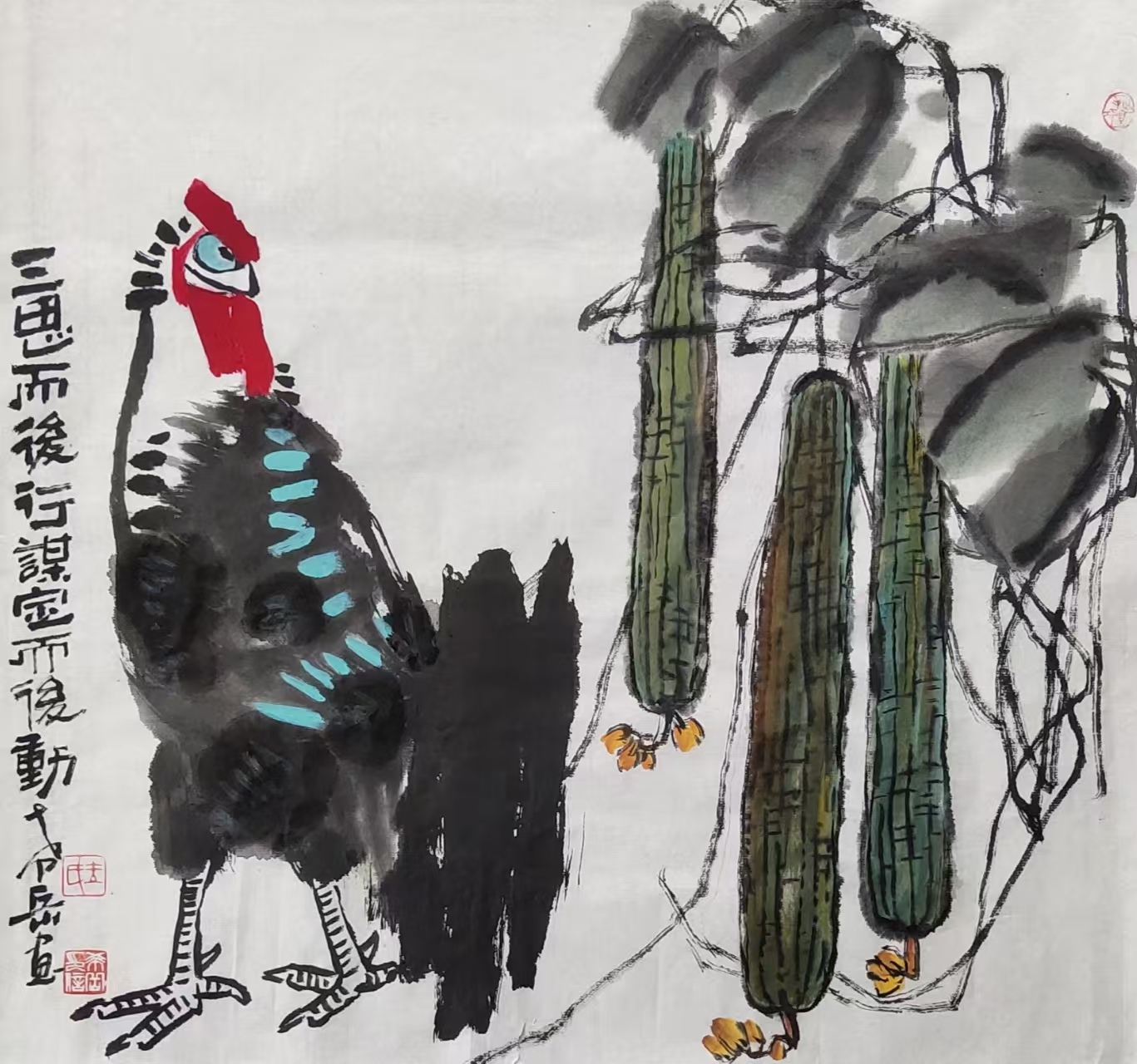 写意花鸟画《三思而后行 谋定而后动》69x69cm 2025