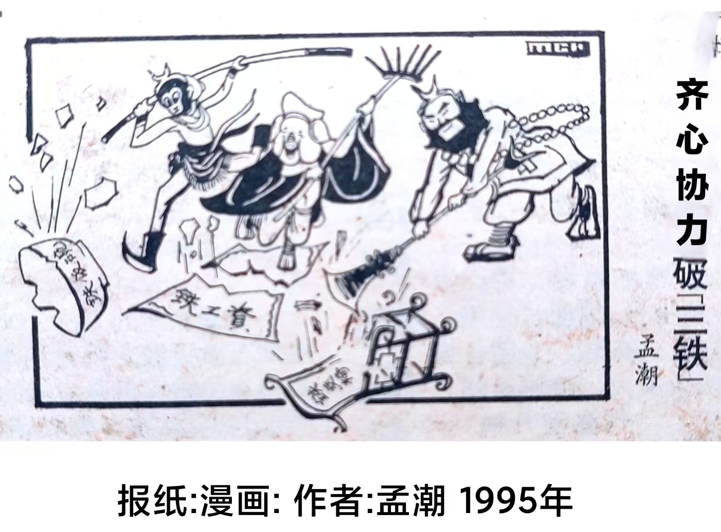 报刊漫画《齐心协力破(三铁)》