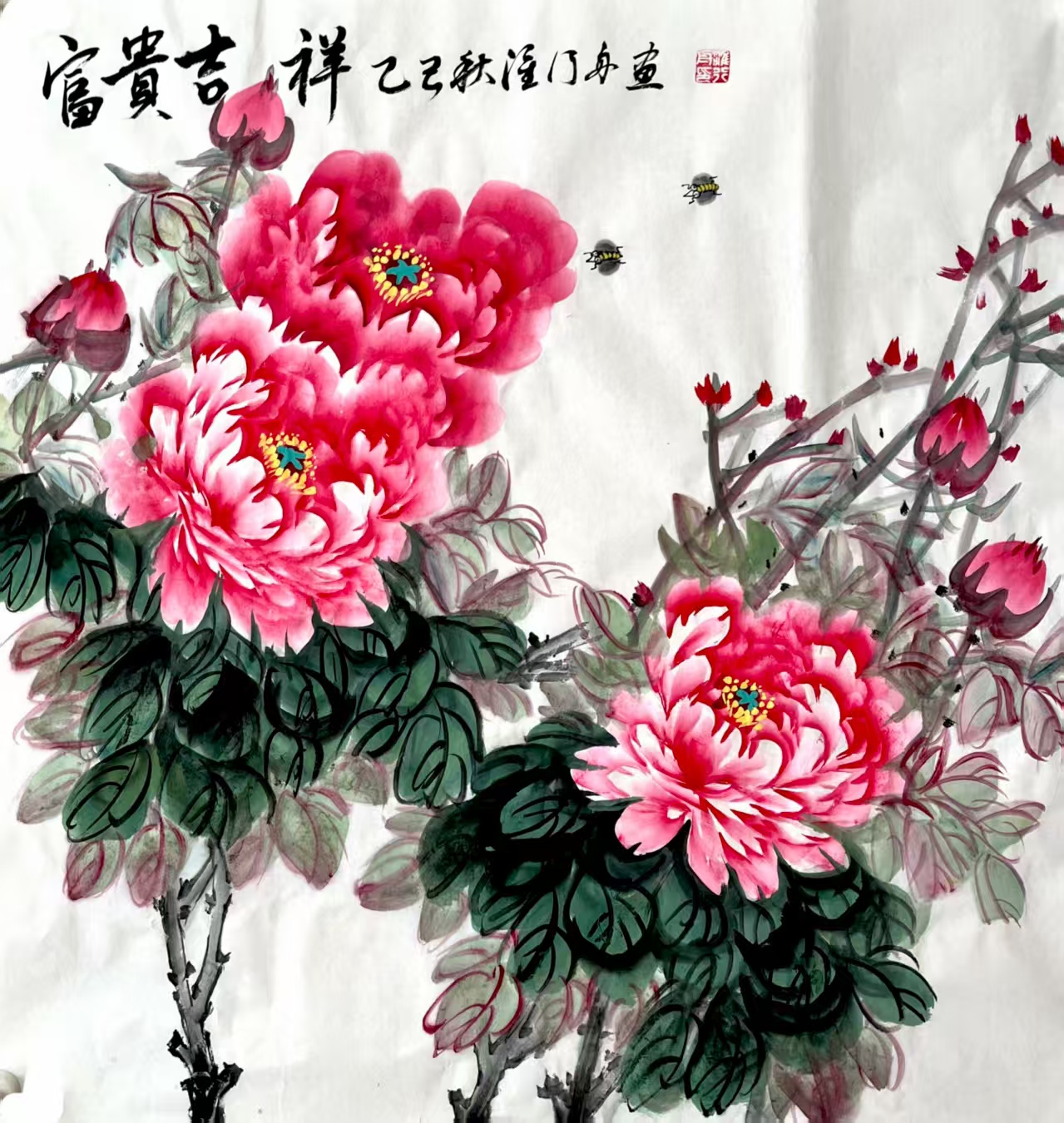 国画牡丹斗方《富贵吉祥》69x69cm 2025