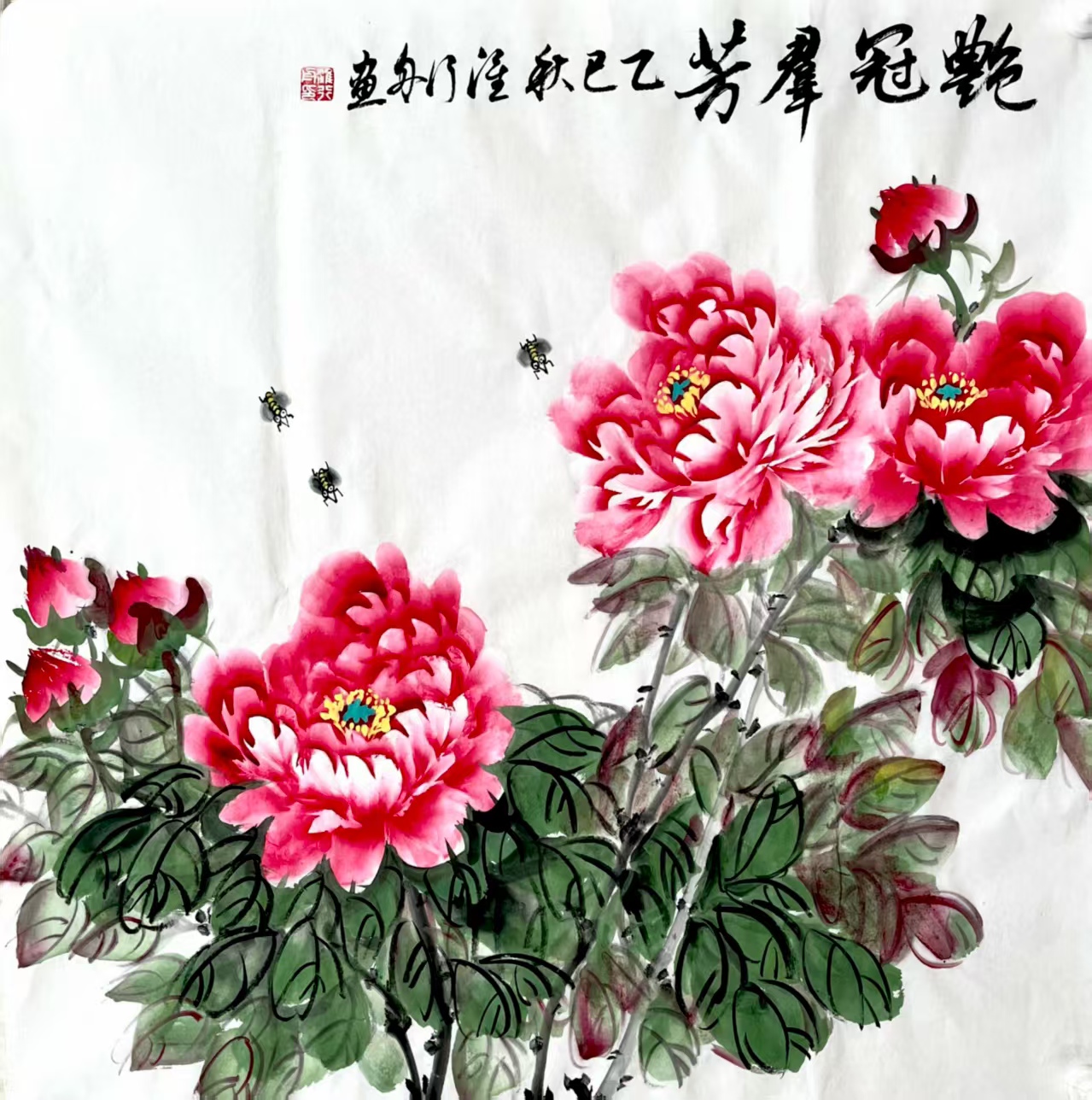 国画牡丹斗方《艳冠群芳》69x69cm 2025