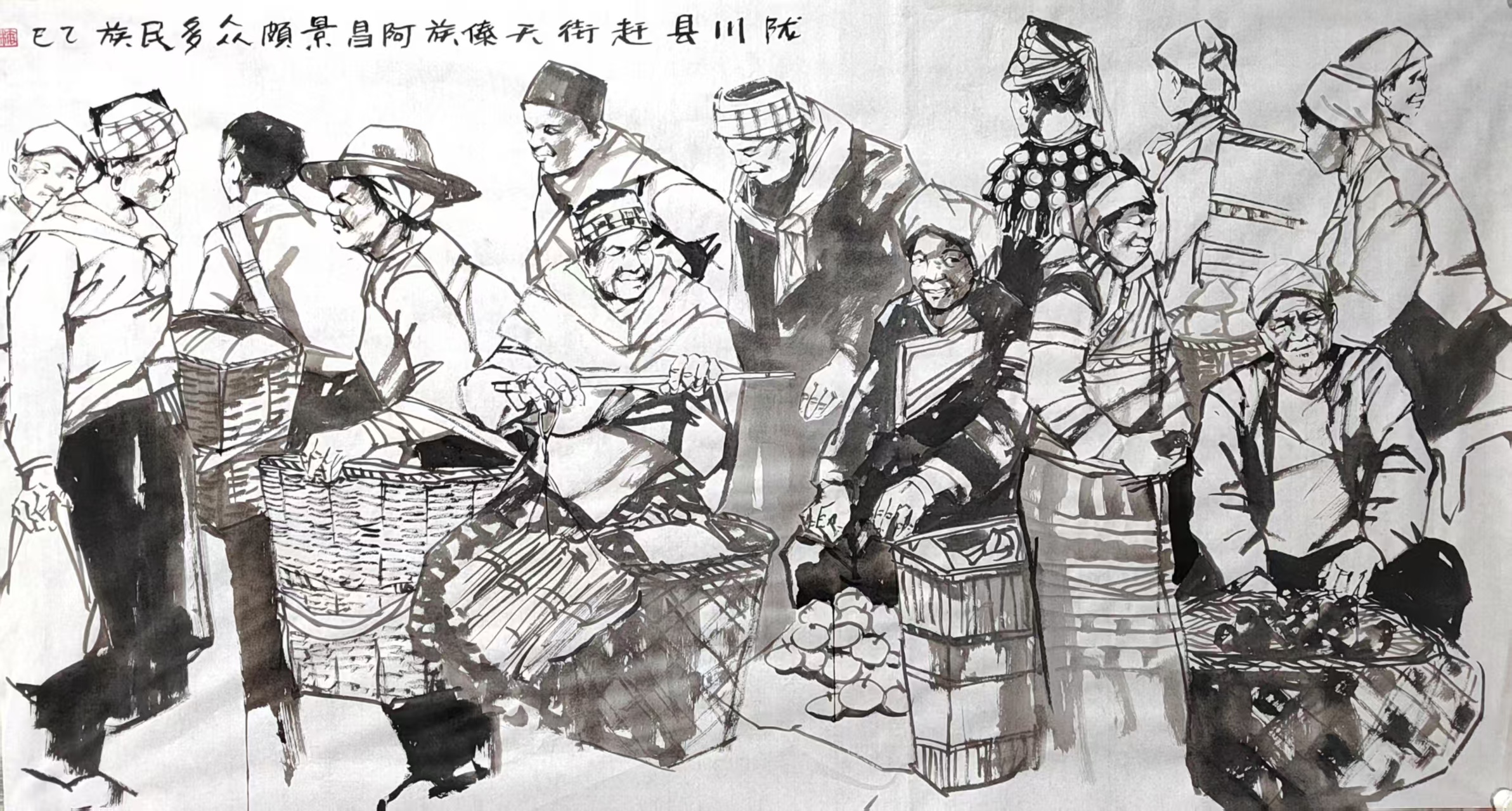 梅竞 ||《人间烟火》集市篇水墨速写一组欣赏