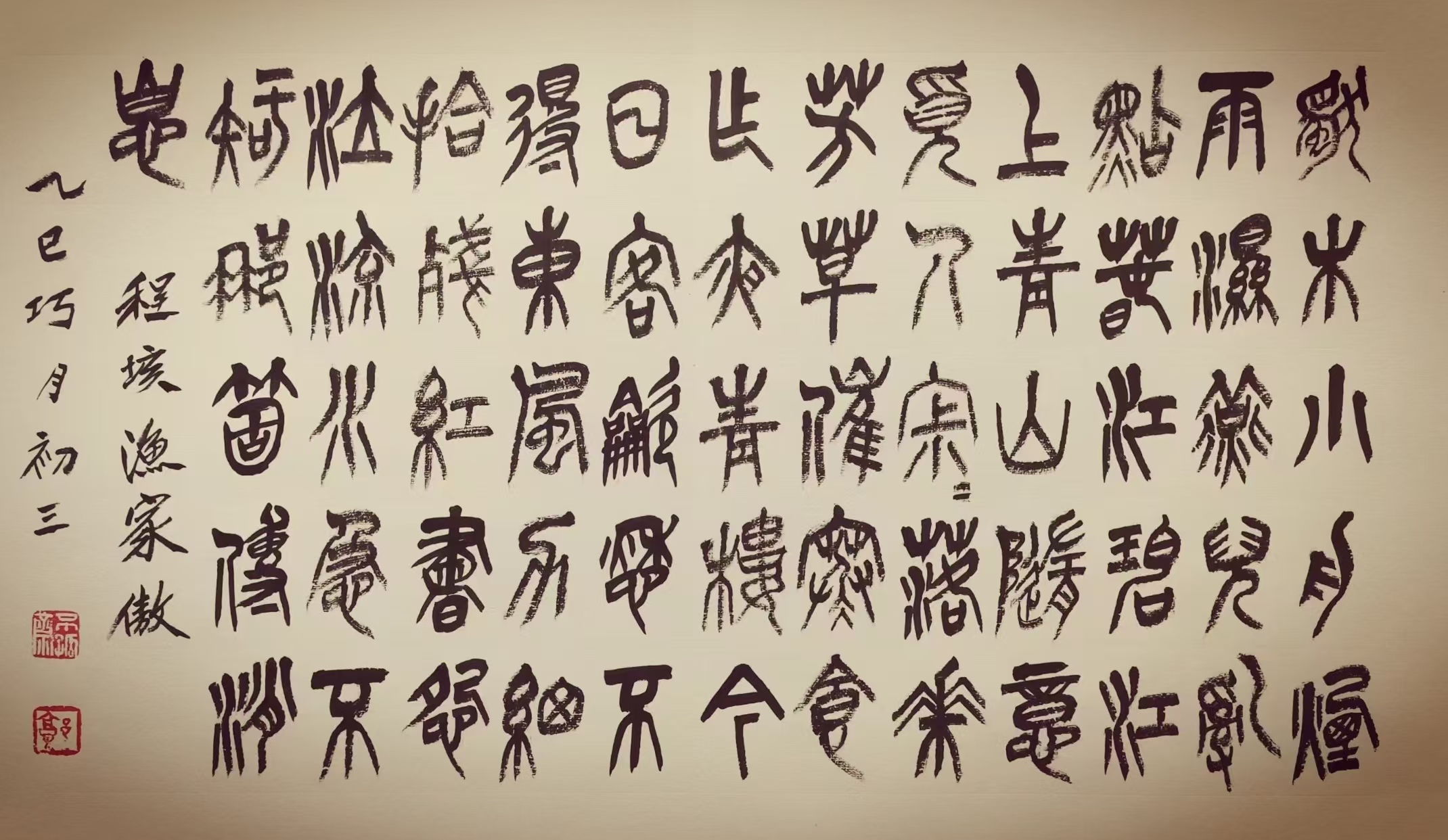 郭德双 1954年11生于陕西临潼,中共党员,大专学历,1974年入伍铁五师 任战士、文书、排长。78年3月入长沙铁道兵学院学员。毕业后留校,任军事教研室教员。1982年12月转业,曾任铜川市粮食局副局长,调研员。2014年11月退休。艺术简历作品曾入展:铁道兵学院书画展;商业部职工书画展;市、省、国家等书画展。获中书协全国首届临帖展优秀作品奖;铜川市委市政府铜川市文艺精品三等奖;国家粮食局职工书画展金奖。陕西省书法家协会第三、四届理事,创作委员会委员。铜川市书法家协会第二届秘书长;第三届副主席,顾问。