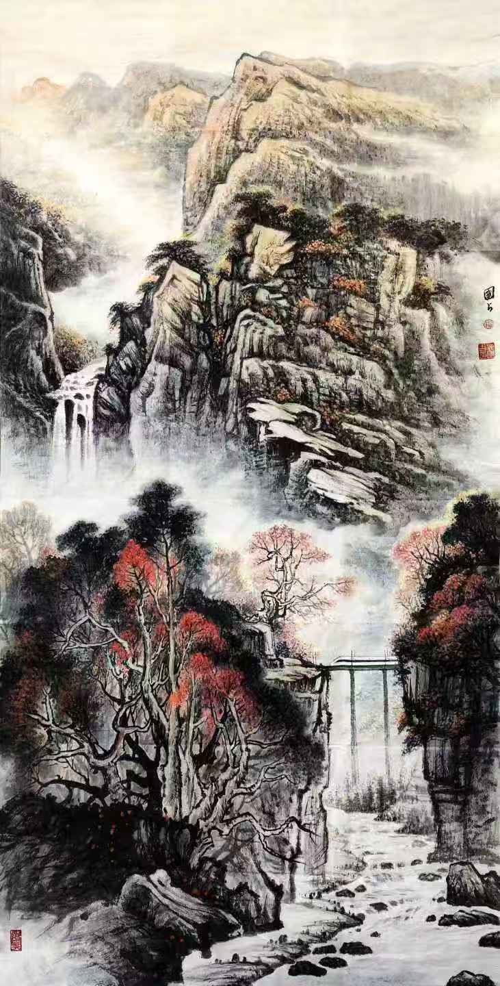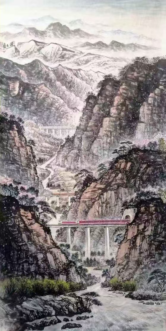 刘国占 ||《成昆铁路的变迁》国画作品欣赏