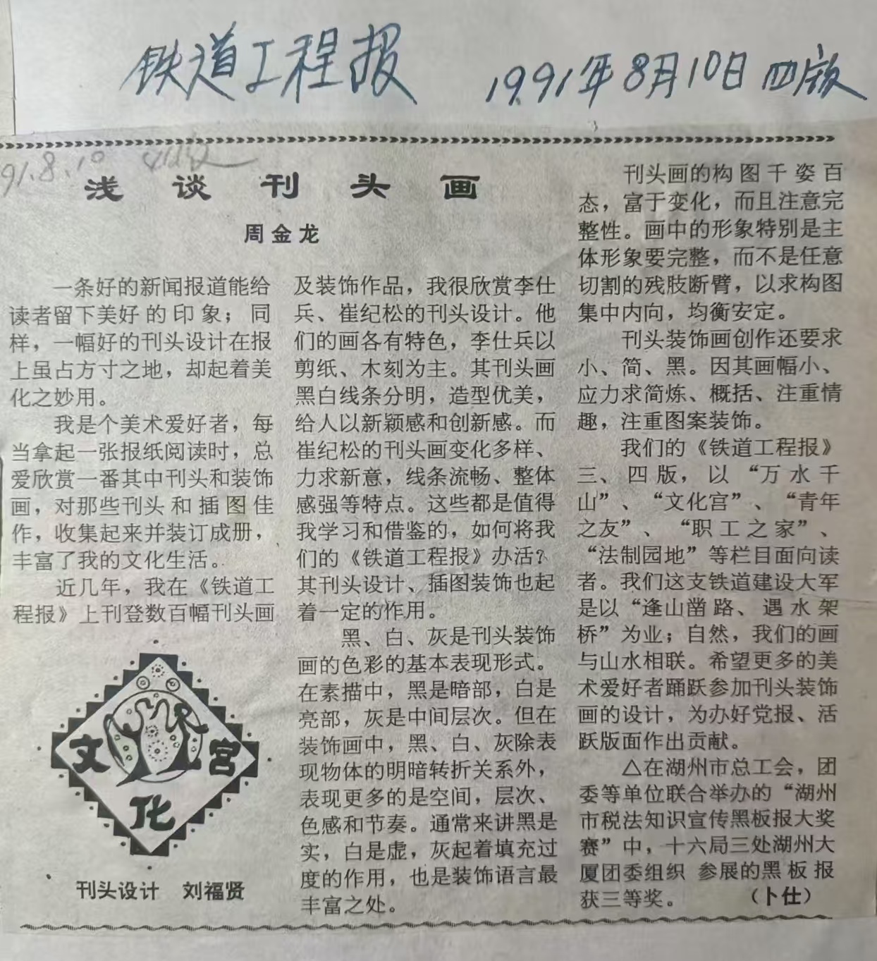 《浅谈刊头画》(刊发于《铁道工程报》1991年8月10日四版)