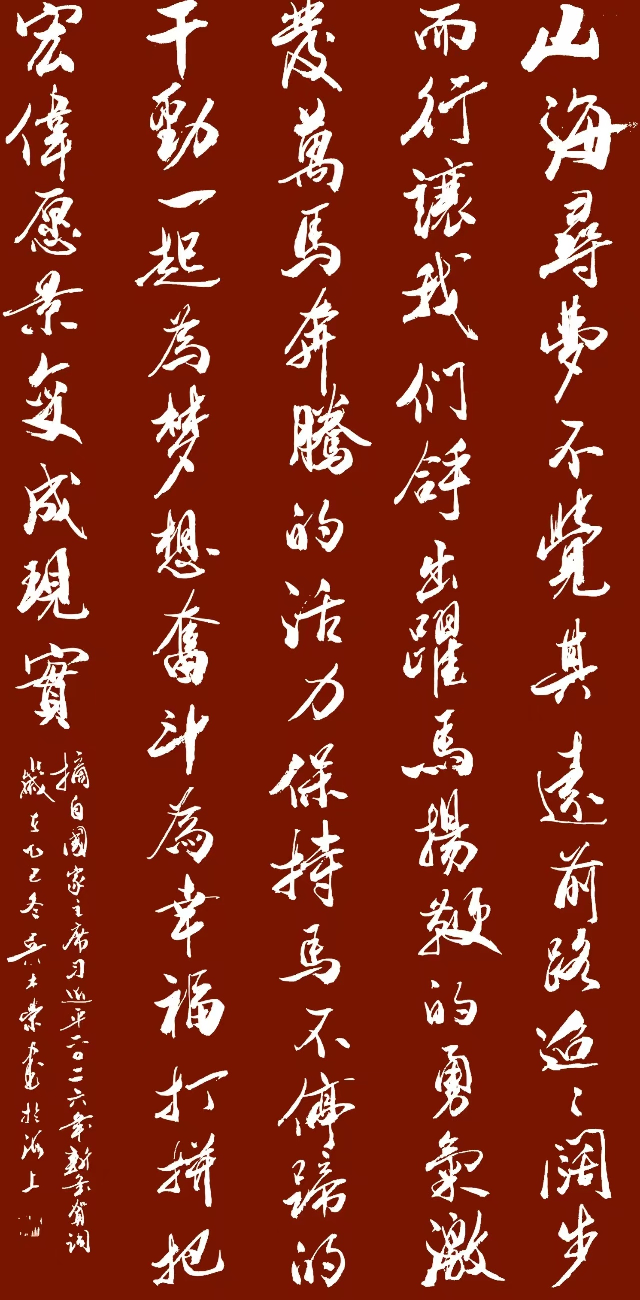 让我们拿出跃马扬鞭的勇气,激发万马奔腾的活力,保持马不停蹄的干劲,一起为梦想奋斗、为幸福打拼,把宏伟愿景变成美好现实。