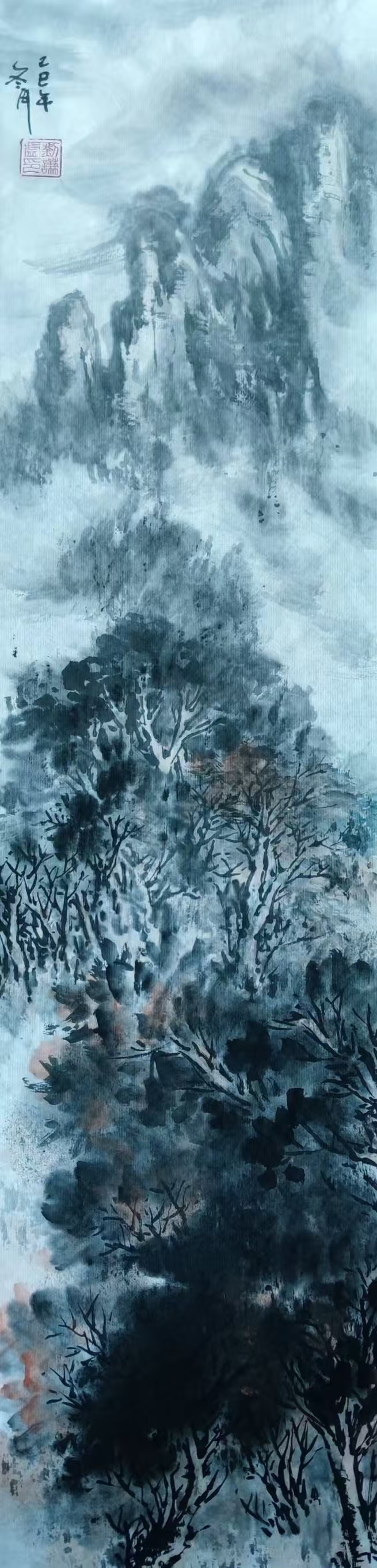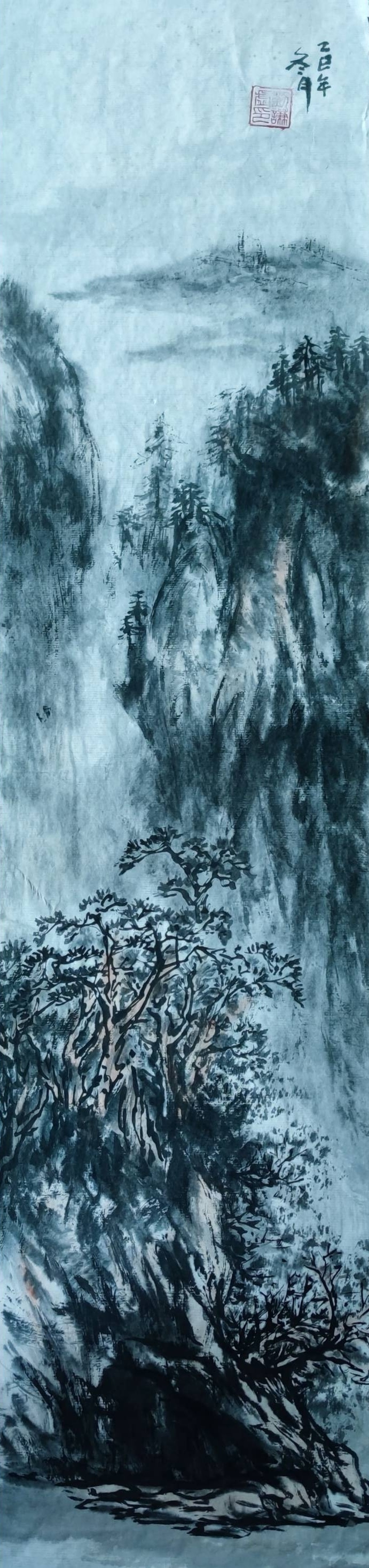 国画《已巳年秋·冬山水画》(2)18x69cm 2025