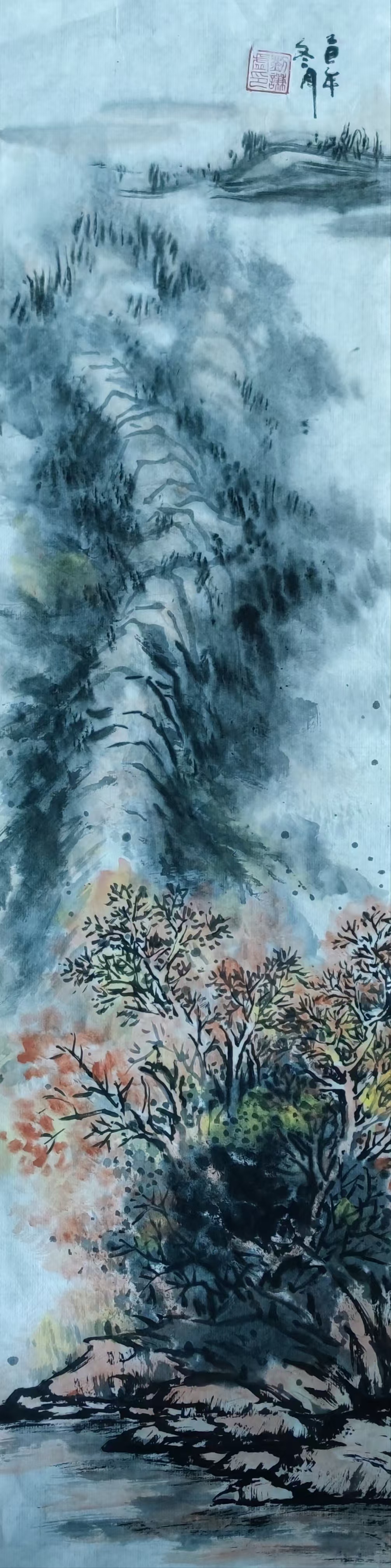 国画《已巳年秋·冬山水画》(8)18x69cm 2025