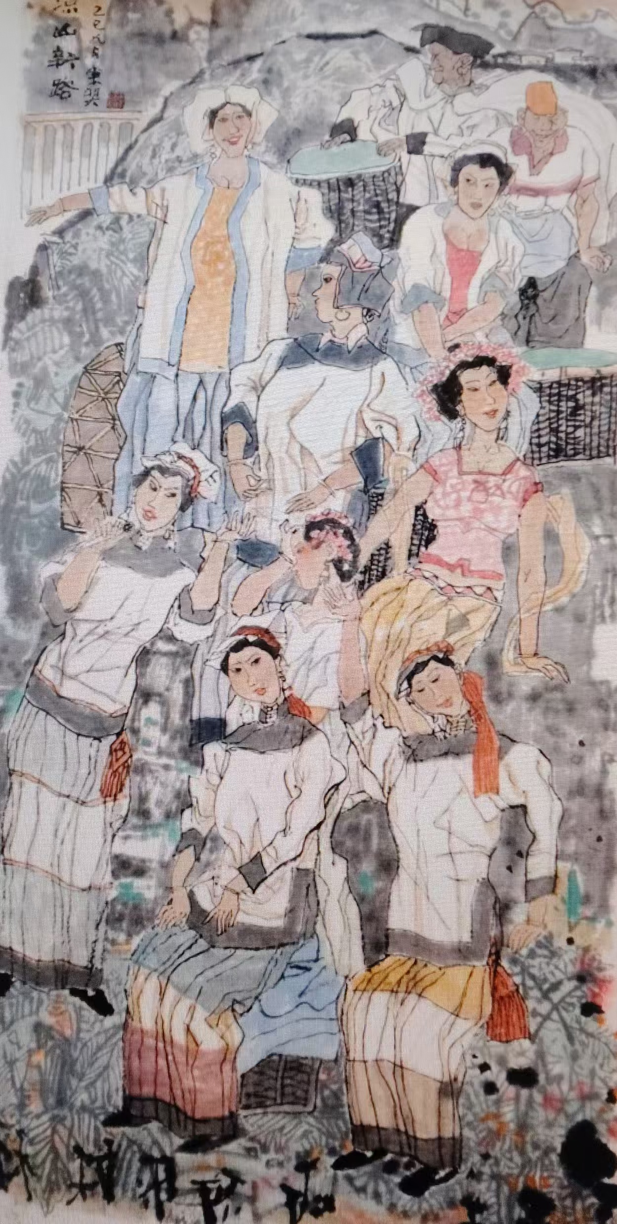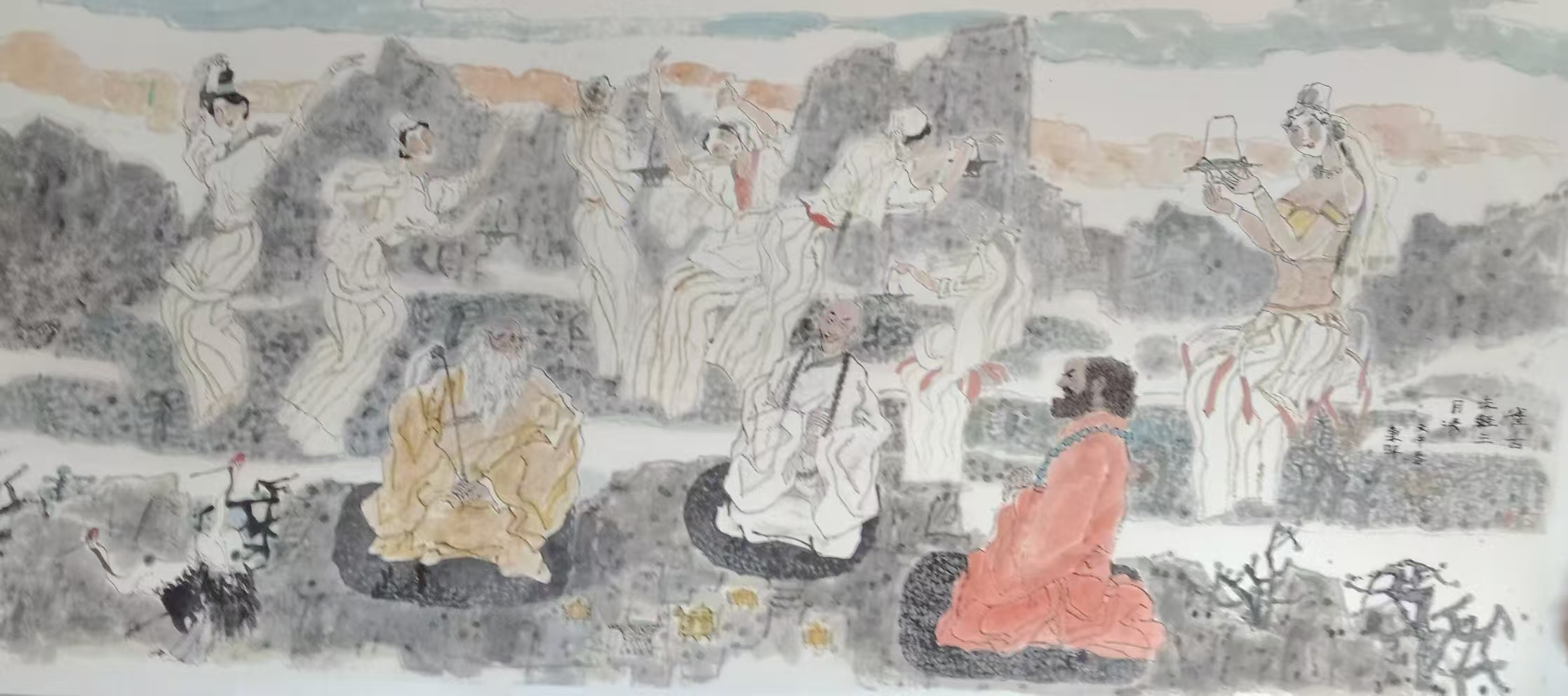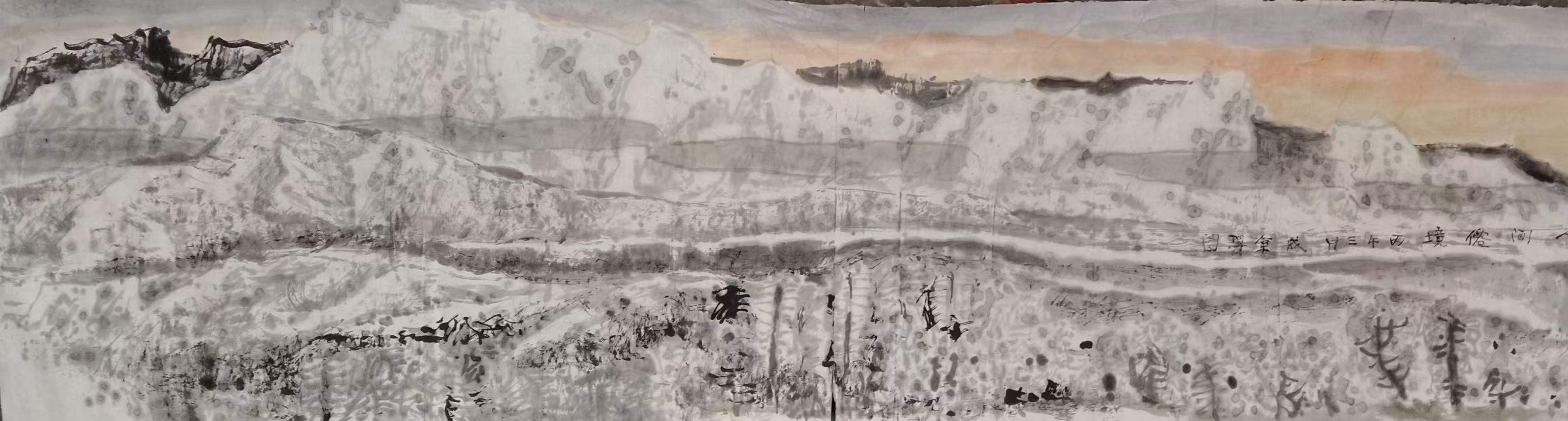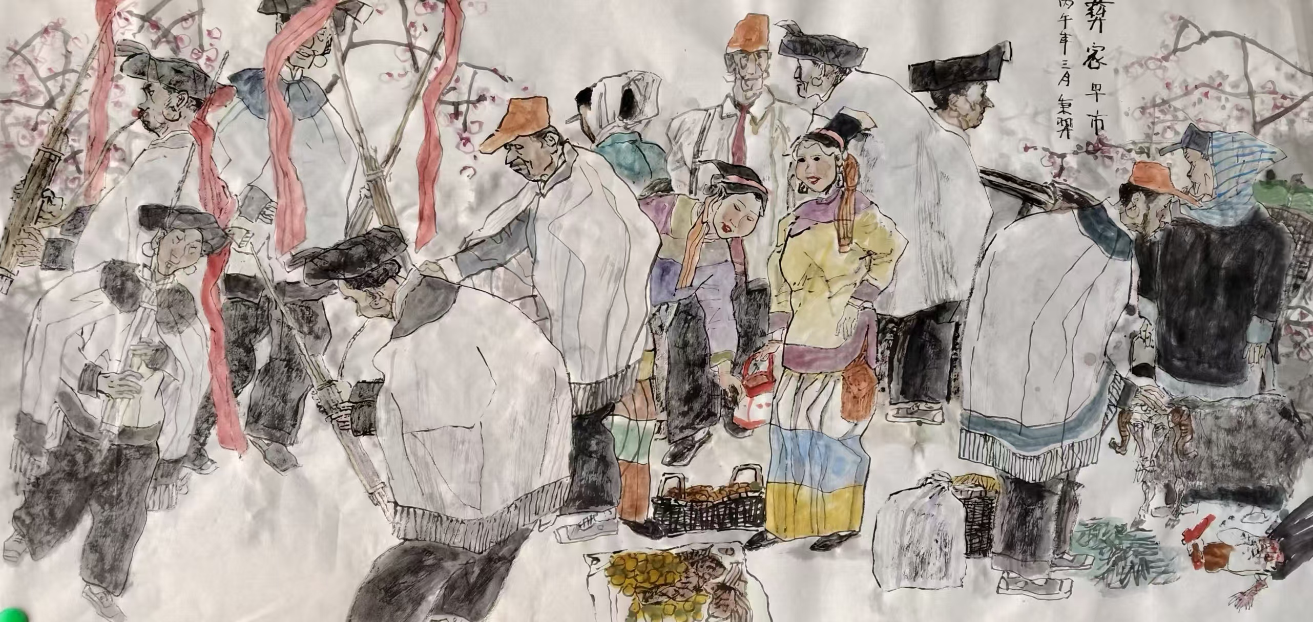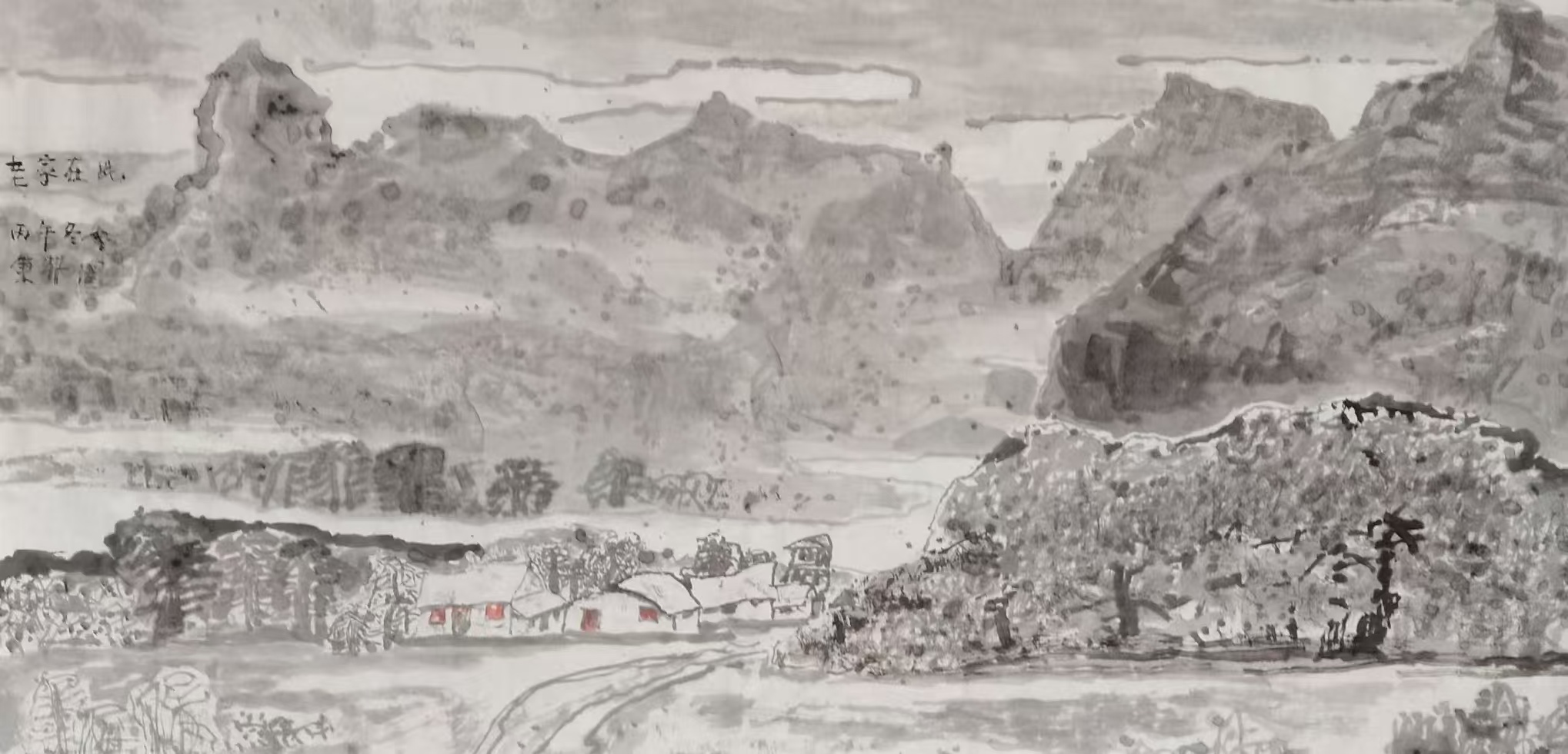 写意国画《杏花山上歌对歌》138x69cm 2026