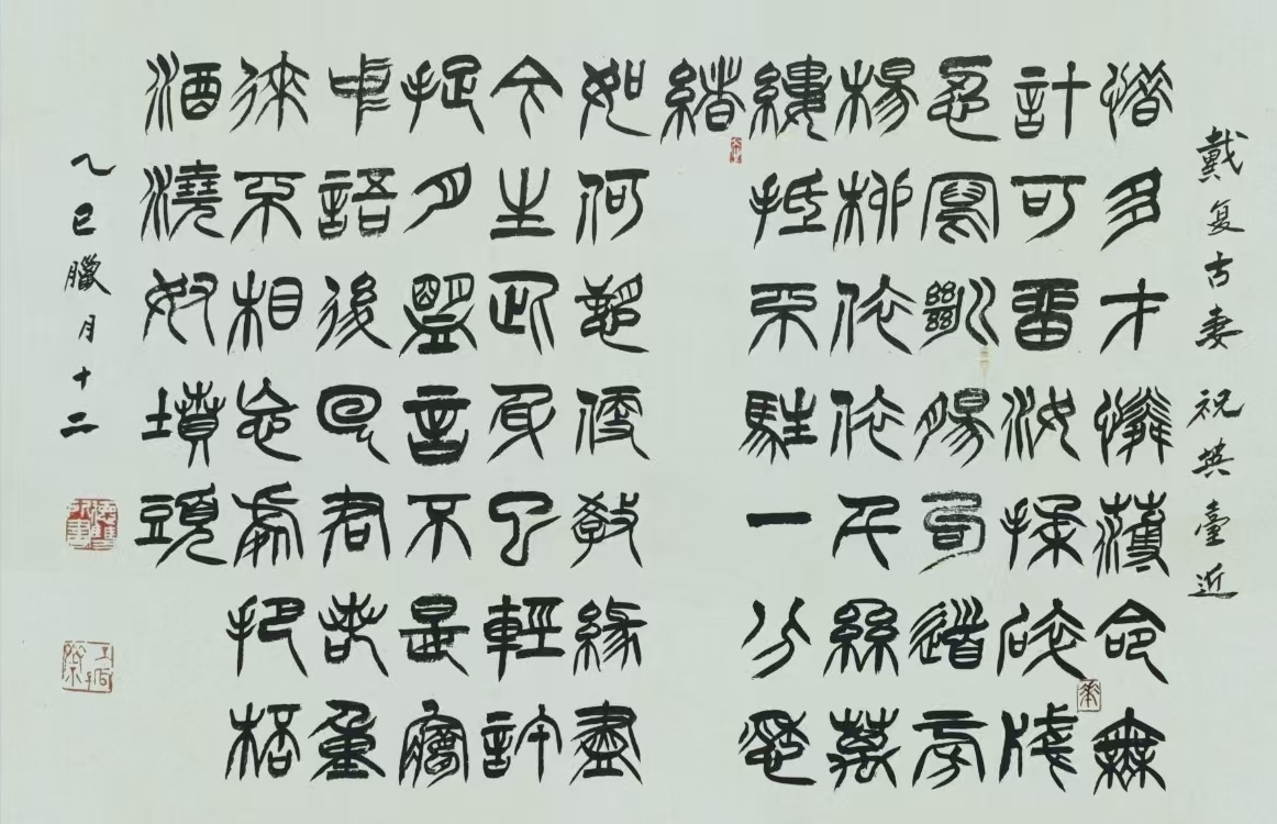 郭德双 1954年11生于陕西临潼,中共党员,大专学历,1974年入伍铁五师 任战士、文书、排长。78年3月入长沙铁道兵学院学员。毕业后留校,任军事教研室教员。1982年12月转业,曾任铜川市粮食局副局长,调研员。2014年11月退休。艺术简历作品曾入展:铁道兵学院书画展;商业部职工书画展;市、省、国家等书画展。获中书协全国首届临帖展优秀作品奖;铜川市委市政府铜川市文艺精品三等奖;国家粮食局职工书画展金奖。陕西省书法家协会第三、四届理事,创作委员会委员。铜川市书法家协会第二届秘书长;第三届副主席,顾问。
