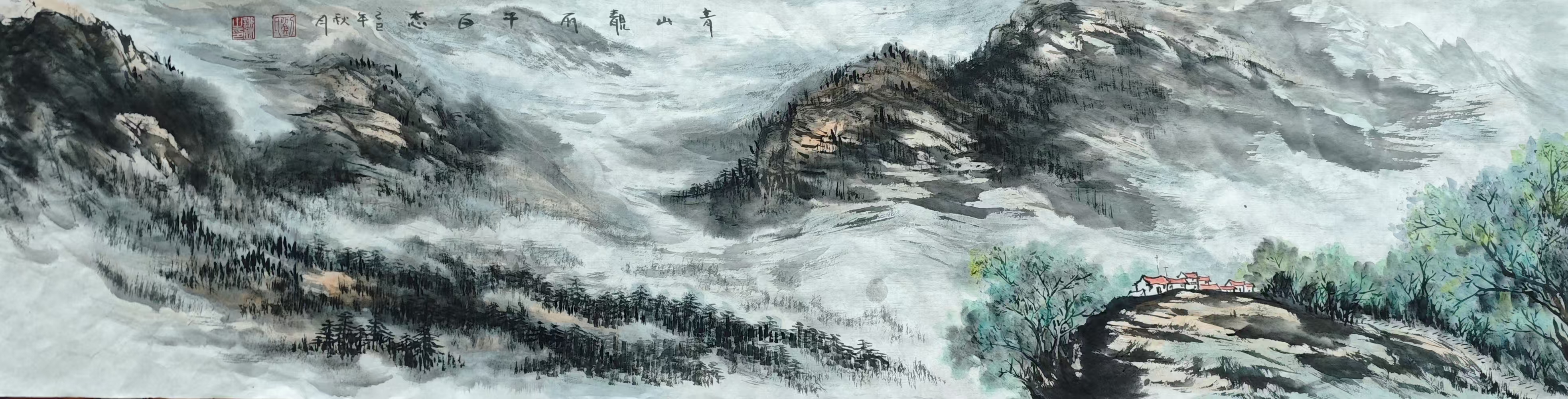 国画《绘一个春天 花香四溢》138x34cm 2025