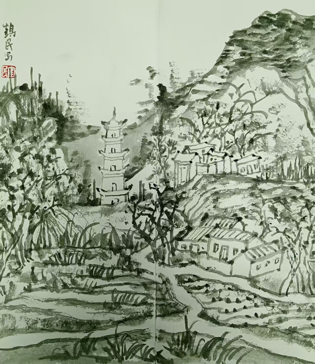 任鹤民册页山水画欣赏