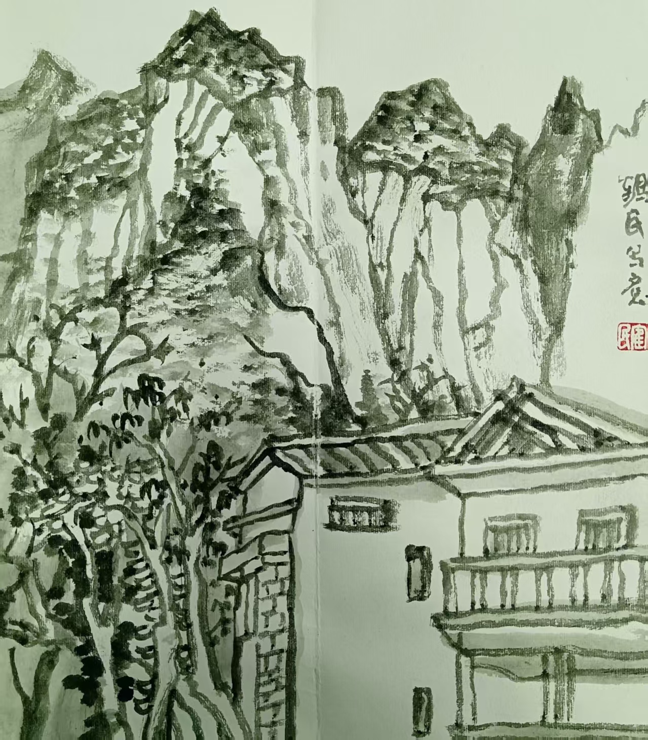 任鹤民册页山水画全景