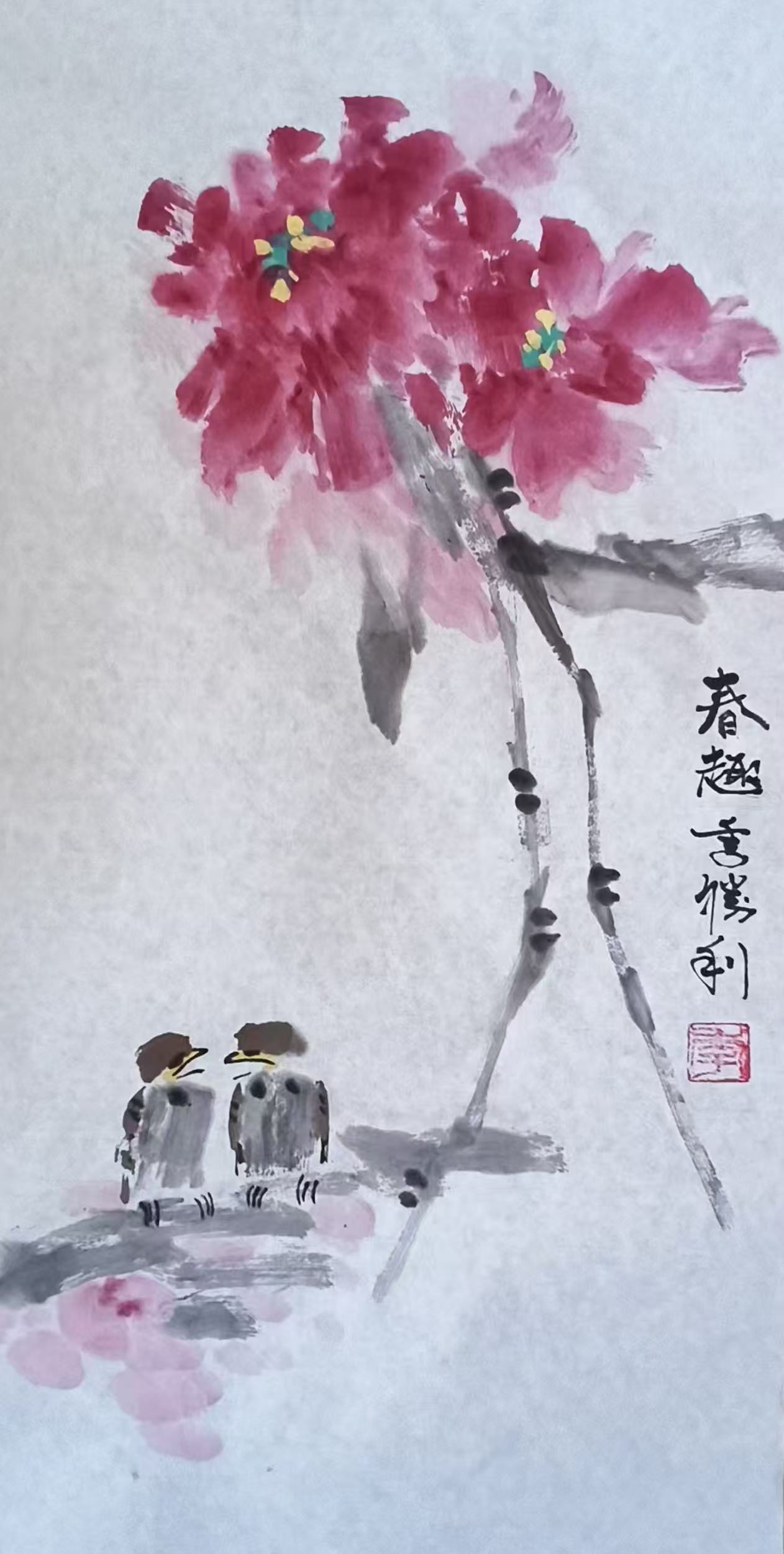 花鸟画《春趣》138x69cm 2025