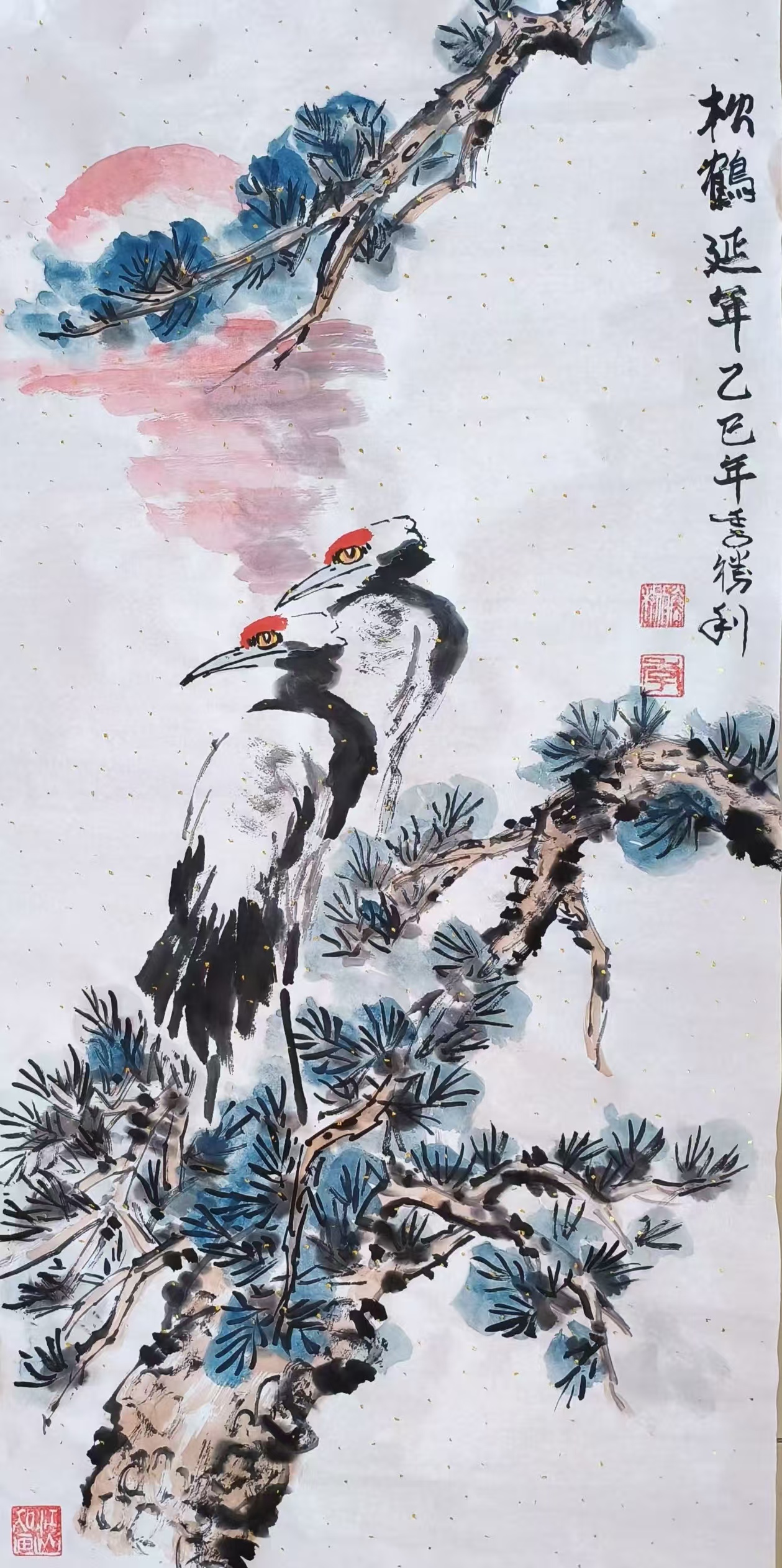 花鸟画《松鹤延年》138x69cm 2025