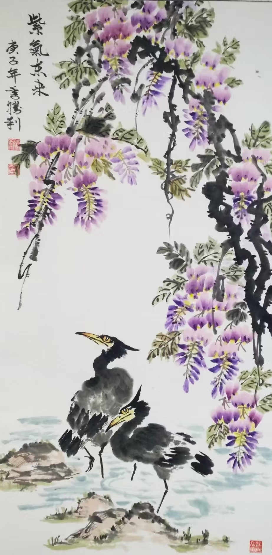 花鸟画《紫气东来》100x50cm 2025