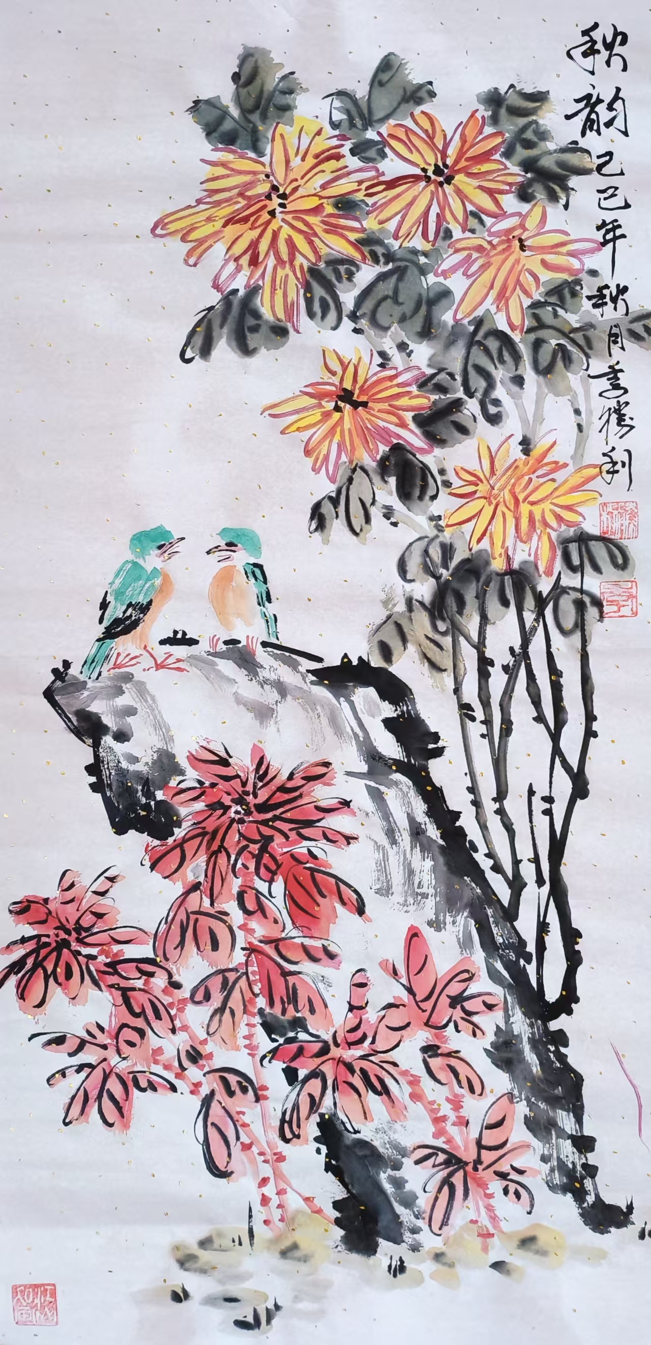 花鸟画《秋艳》(2)138x69cm 2025
