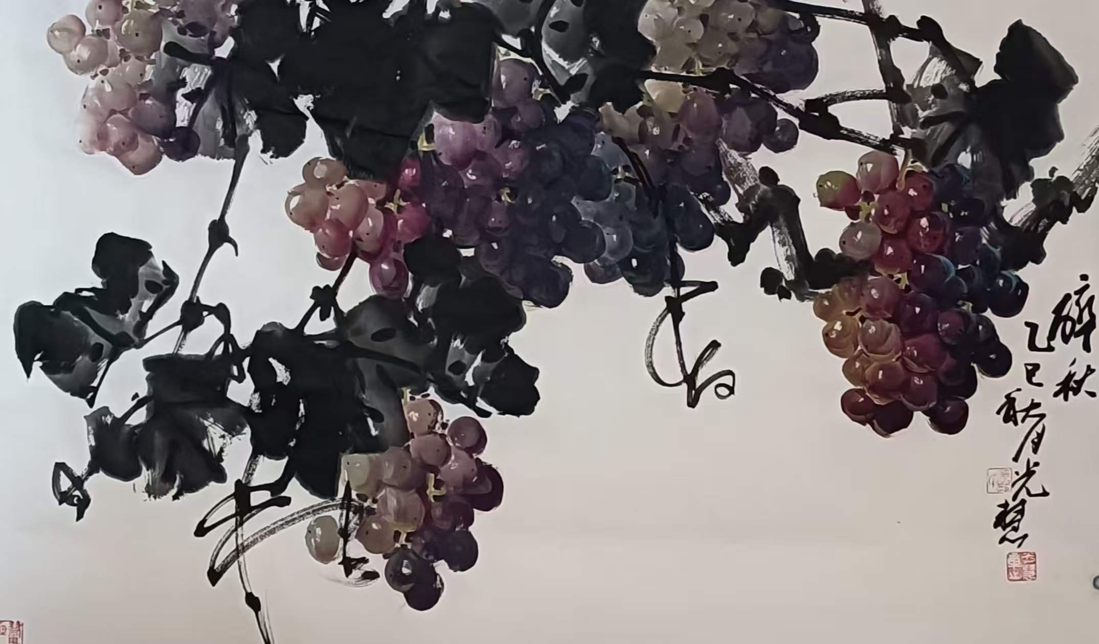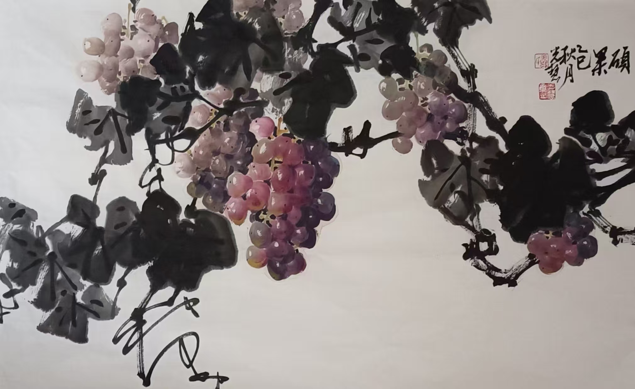 国画《葡萄园中色彩鲜》90x60cm 2025