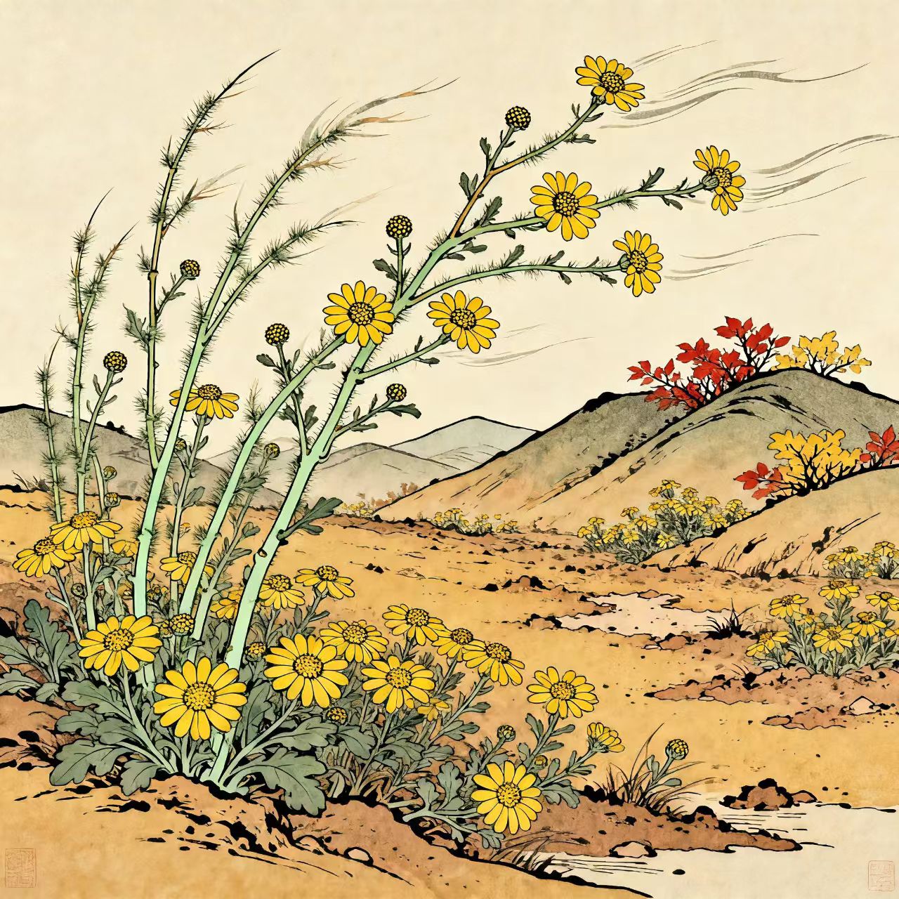柔枝婀娜任风摇,点缀秋郊分外娆。