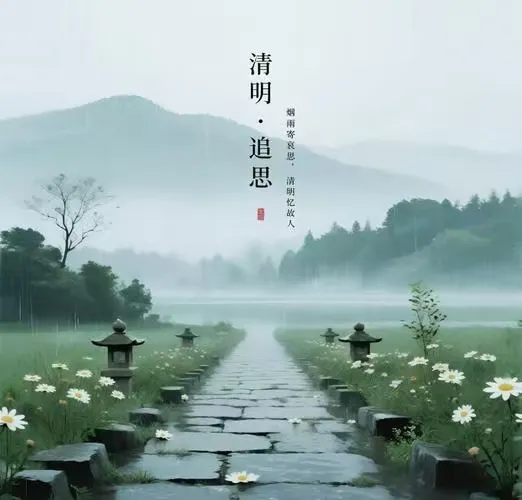 细雨绵绵润绿田。荒草萋萋,残碣苔斑。感恩斟酒酹三杯,往事如烟,旧梦难圆。
