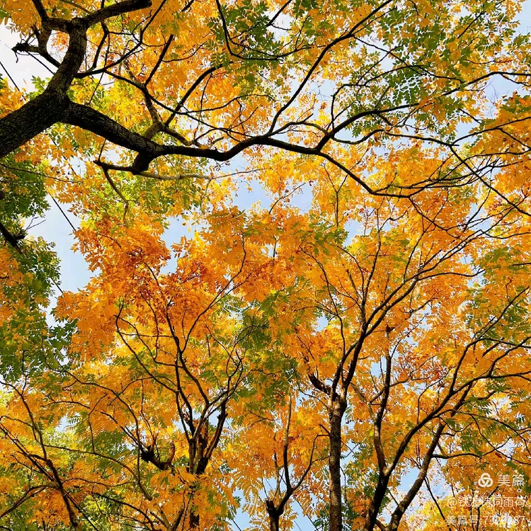 霜染千峰林竞秀,谁裁枫叶舞缤纷。