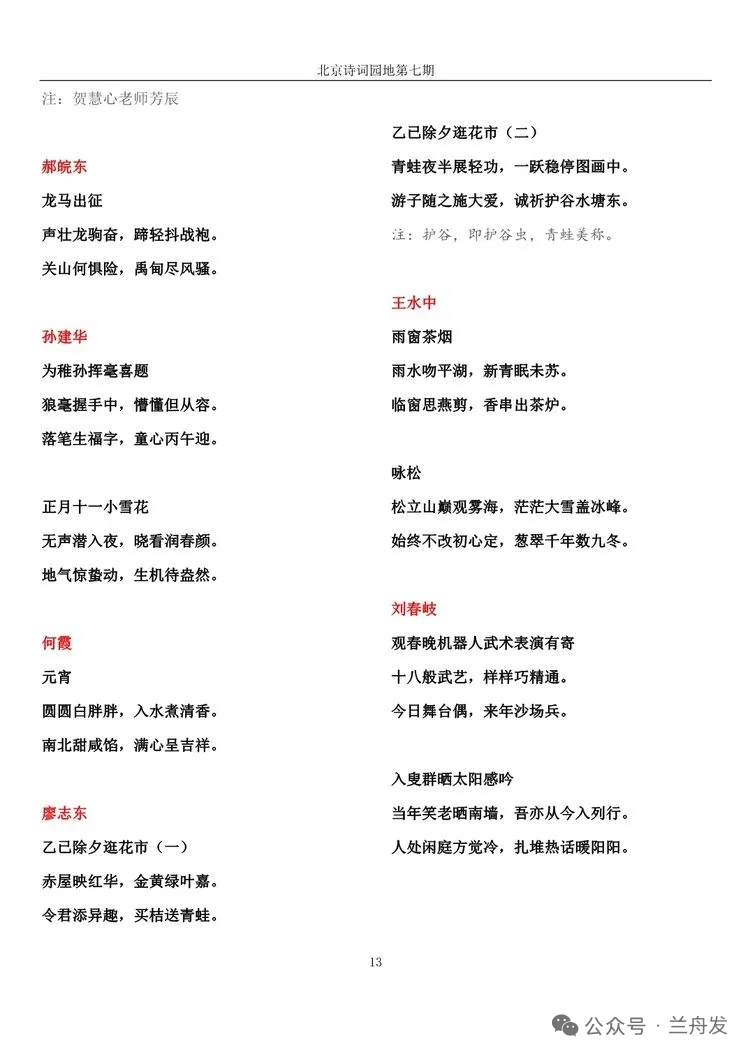 北京诗词园地第七期