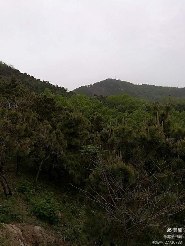 浅夏的天,时而蓝天白云;时而细雨如织;时而阳光灿烂。随心所欲的大自然将大地山川装扮的分外妖娆。俯瞰青山,绿波涌动,处处高大乔木遮荫蔽日,橡树,板栗,槭树,洋槐,枫树,梧桐,曲柳,银杏,松柏,竹林交织成一片绿色的海洋,葱郁茂密,林中小路,潺潺流水,亭台楼阁掩映其间,风景如画。