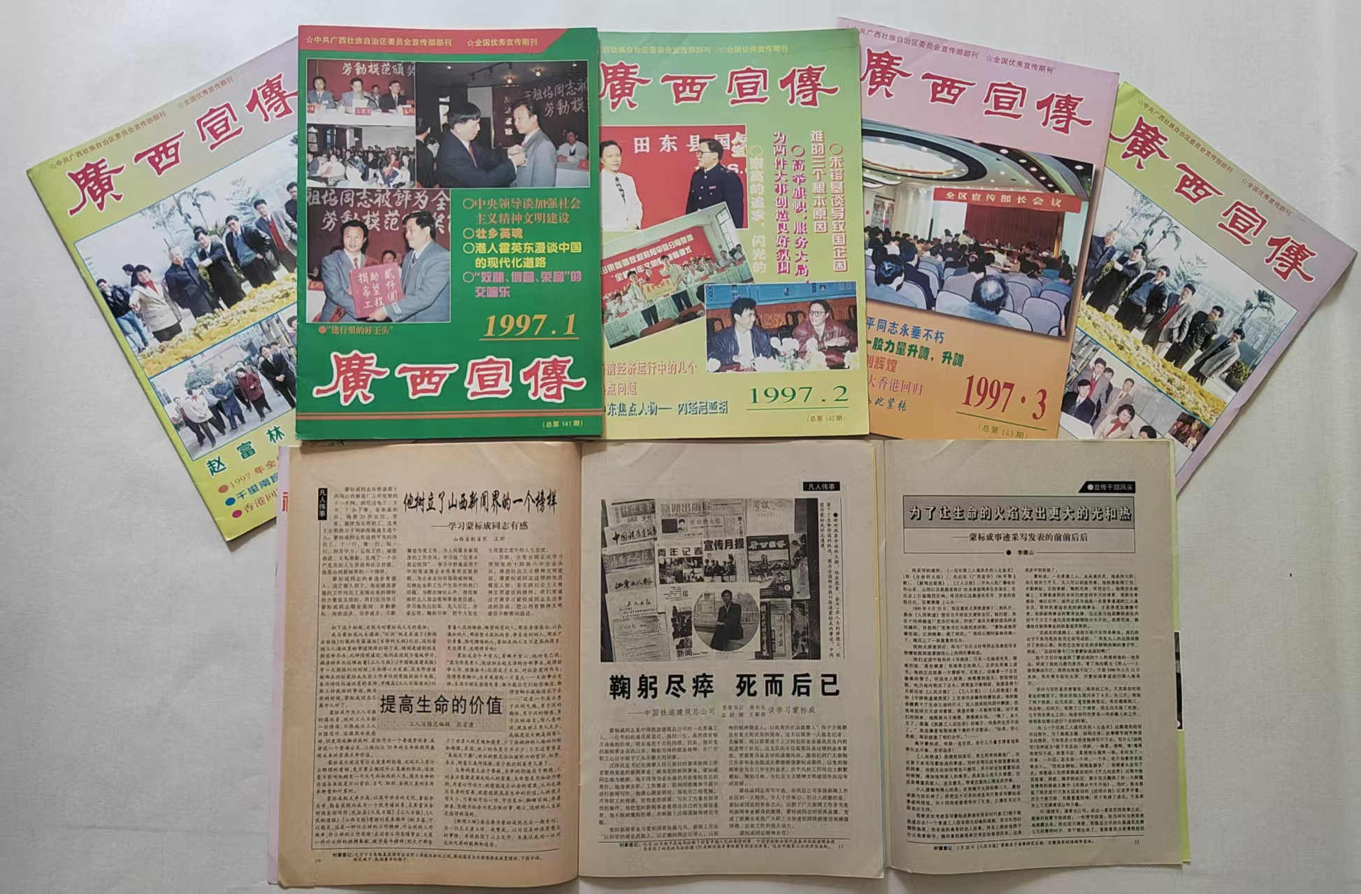 回顾当初,那是1996年“七一”前夕,我采写的蒙标成的长篇通讯送审、定稿、签字、盖章后,便以《一位壮族工人通讯员的人生追求》为题,冒昧地通过邮电局寄往《广西宣传》(后更名为《宣传与文明》)杂志社。没想到大约一周之后,时任社长兼总编辑苏树桥打电话向我要有关蒙标成报道的照片,并激动地对我说:“编完《一位壮族工人通讯员的人生追求》,我禁不住潸然泪下,激人奋发啊!我国新闻事业的兴旺发达,靠专业工作者的奋力开拓进取,也靠千千万万业余通讯员的无私耕耘奉献。