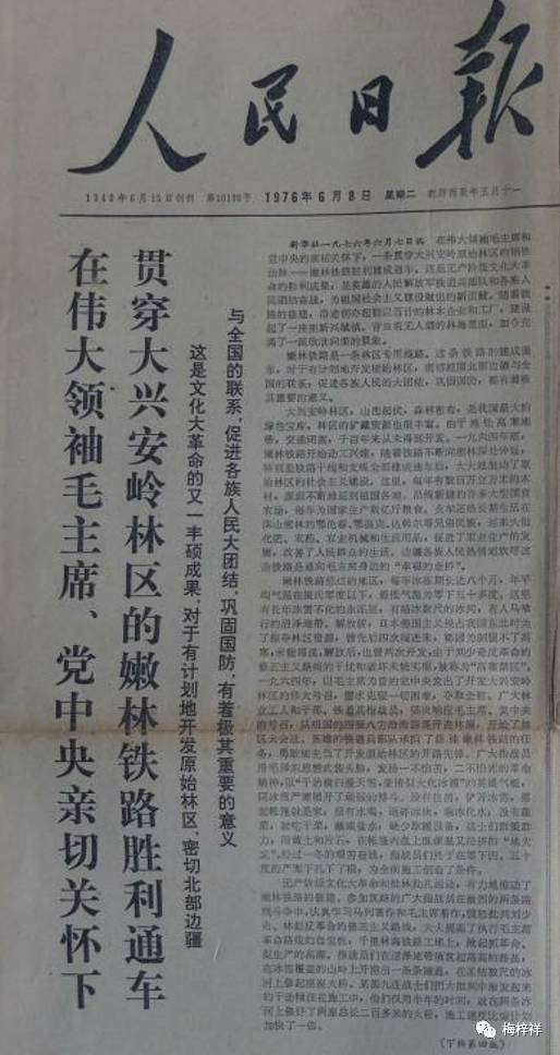 这是1976年6月7日新华社的一篇电讯稿《贯穿大兴安岭林区的嫩林铁路胜利通车》。次日,《人民日报》《解放军报》等全国各省市报纸,均在头版头条位置刊载这篇消息,并配发照片。