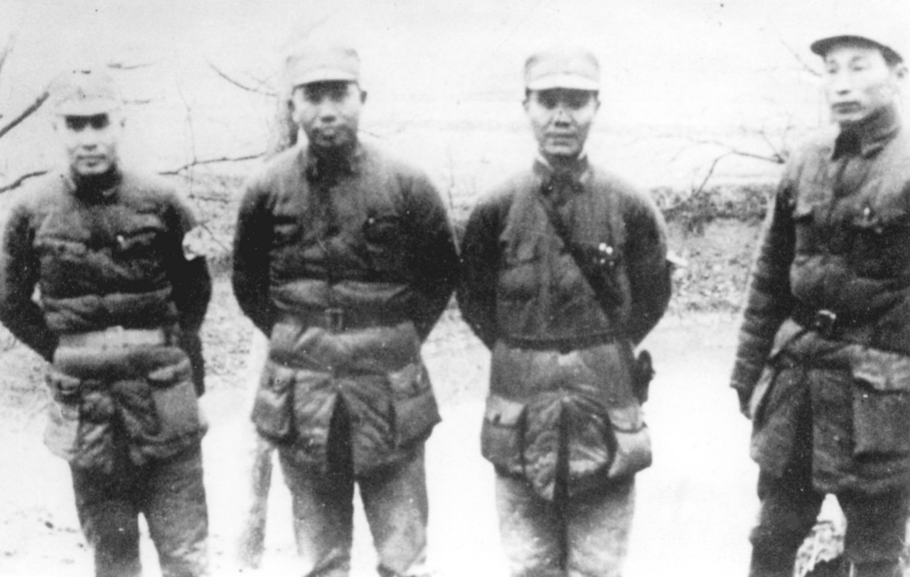 长王海山(右1)一支队队长徐休。(右2)摄于1939年秋