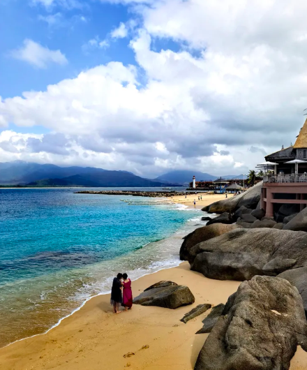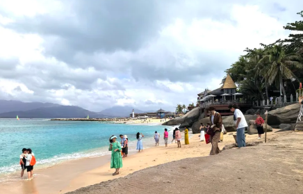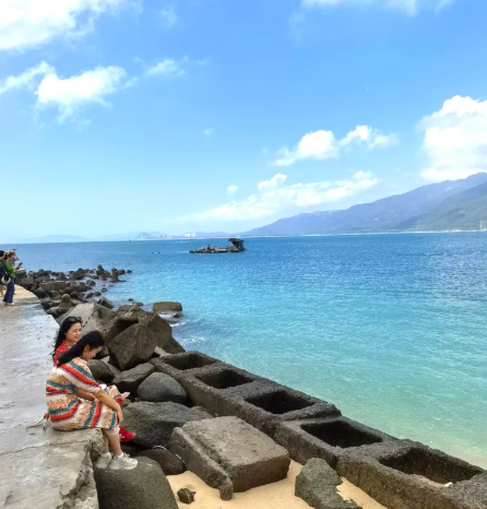 前几天,我们如愿以偿,因为老同学袁庆永一家今年住在陵水。袁协助我们,提前订了酒店,我们提前一天赶到,直奔老同学家,饭也吃了,磕也唠了,以著名的疍“dàn”家鱼排为主的海边夜景,也带我们看了。第二天(12月11日),我们准备去登岛了。庆永说:“我们陪你们去罢”。