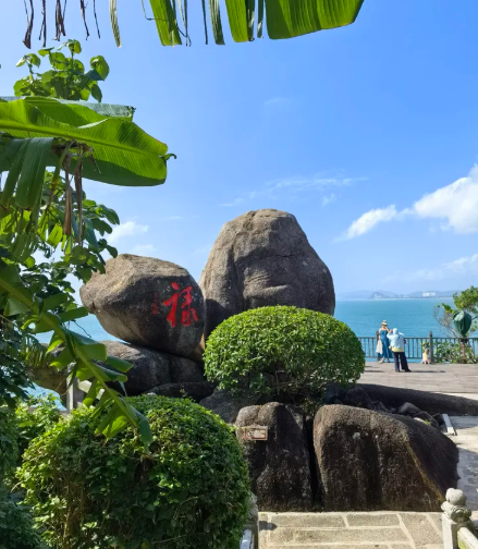 风动石旁有一观景平台,站在此处,可居高临下观赏山海景色。