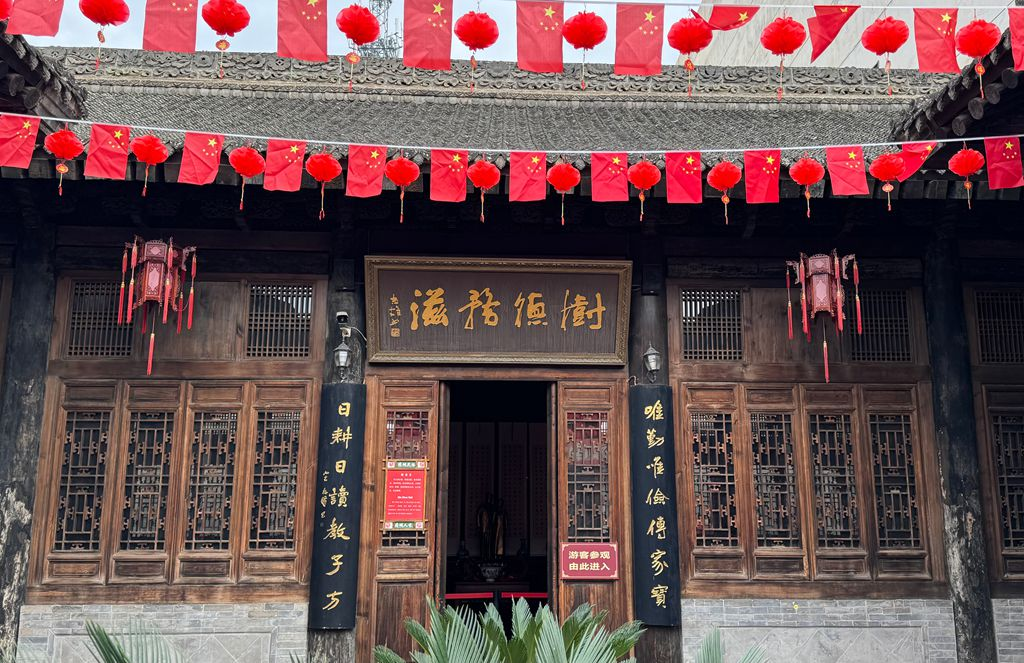 跨进门槛,中轴对称的庭院里,木雕、石雕、砖雕随处可见:雀替上的花鸟振翅欲飞,门簪上的龙凤盘旋缠绕,连天井的排水石都刻着暗八仙图案。“子岩府”的三进院落最为精巧,天井将天光引入室内,雨水顺着瓦当汇入暗沟,百年不曾积水,藏着古人的营造智慧。在老院子的堂屋,八仙桌旁的太师椅还留着木纹,墙上的族谱记载着周氏家族的迁徙史。讲解员指着梁上的匾额“树德务滋”四个字说:“这院子从创业艰辛到仕途辉煌,始终强调道德修养,至仁至善力求普遍,展露出一个家族的教养与风范。”