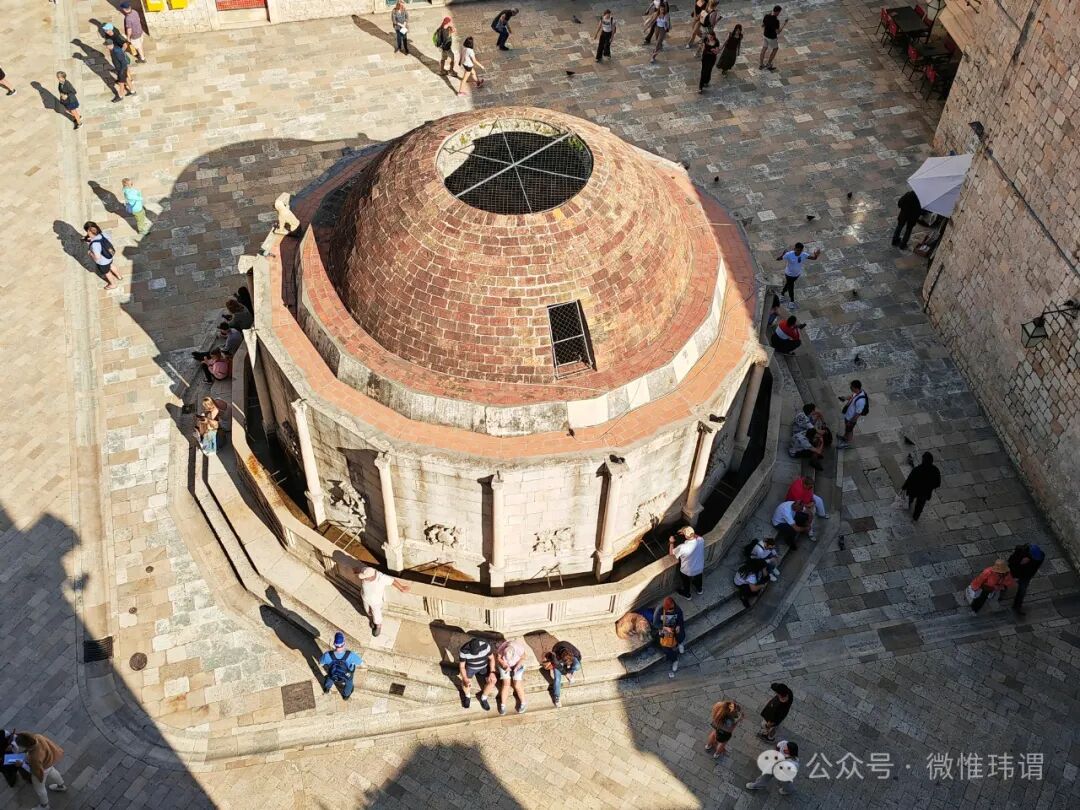 派勒城门处的欧诺弗利欧水池建于15世纪,水源引自12公里外的杜布罗夫尼克河。这个被水槽环绕的圆形建筑,有一圈草叶纹包围着的各样面孔,源源不断地吐出清澈甘甜的水。我胃肠太过敏感,没敢尝试。