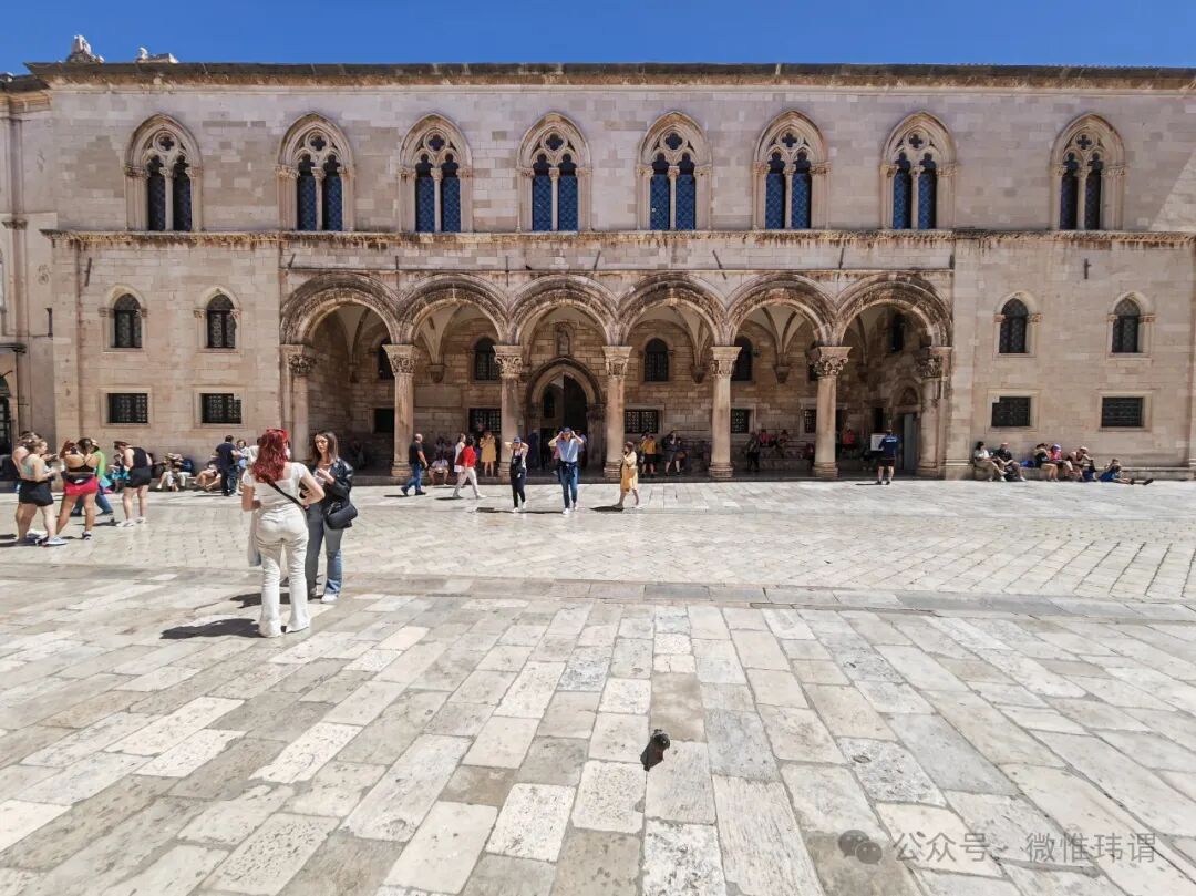 史邦扎宫1516年建造,是1667年大地震幸存的建筑,最初是海关大楼,16世纪末成为共和国文化中心。庭院门廊上刻着古老的商业名言:“我们卖货从不缺斤少两,因为当你在称货时,上帝也在称量你”。