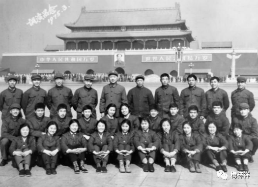 1975年,铁道兵六四四四工厂宣传队赴京调演时在天安门前合影留念。后排左五为黄荣森。
