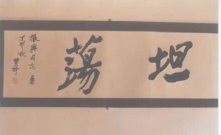 先生面带春风,眼飞祥瑞,看得出心情颇佳,不免心存奢望,斗胆请墨于先生,黄老欣然应允,写什么字呢?听老人家问我,喜上眉头而又略显慌恐,一时真不知写什么好。我这个人生性率直,不善掩饰,做人办事喜欢直来直去,总觉得戴着面具活着是很累的,所以极赏“君子坦荡荡”一语,便脱口而出,请先生题写“坦荡”两个大字吧。