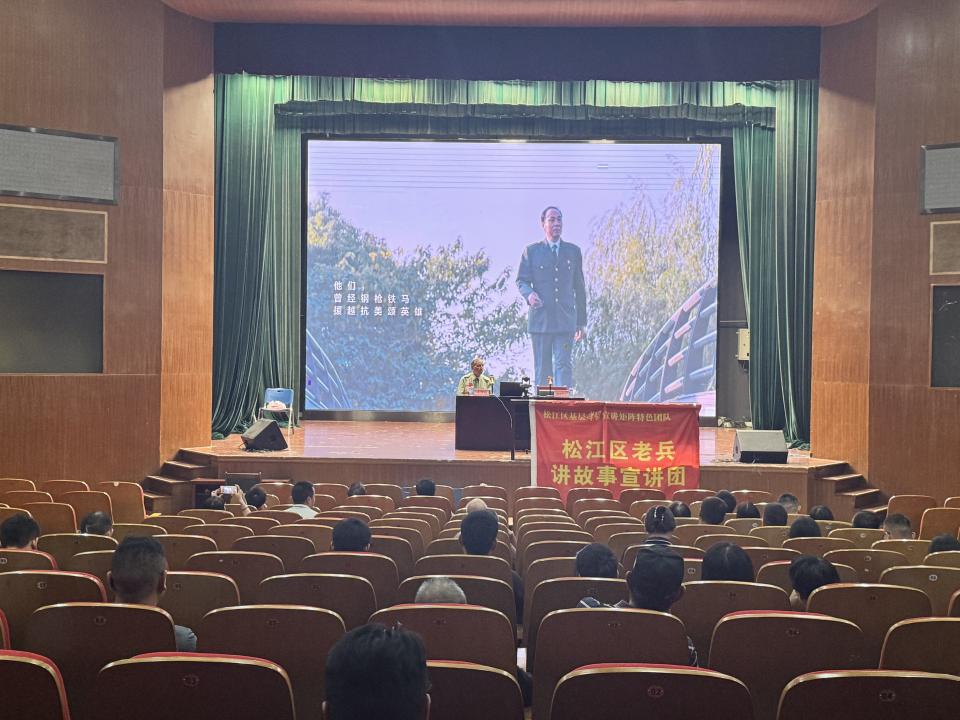 朱老师的宣讲长达一小时,他以83岁高龄,全程站立,脱稿讲述,老兵精神赢得全场听众热烈掌声。50多双眼晴齐刷刷聚焦在老兵身上、松江茸耀五老宣讲团成员,新浜镇知名红色宣讲员陶木南老师今天也莅临现场,他热情称赞老兵故事讲得好,83岁高龄身板硬朗、声音洪亮、记忆力极好,能脱稿出口成故事,值得敬佩”。