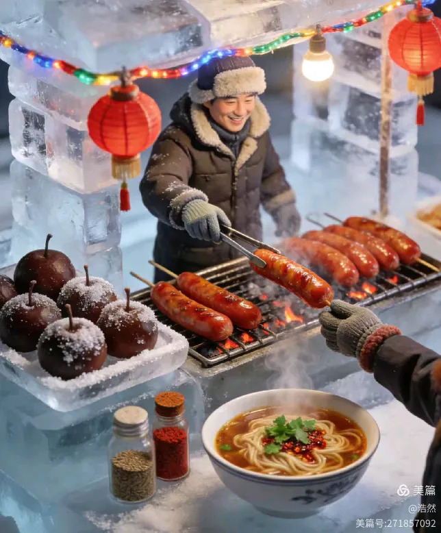 美食是舌尖上的暖,熨帖着北国的寒。冻梨咬开的瞬间,清甜的汁水漫过齿间,冰爽里藏着秋的余韵;烤红肠滋滋冒着油花,香气裹着烟火气钻进鼻腔,肥瘦相间的肉质,嚼出满口鲜香;还有一碗热腾腾的酸菜肉丝面,酸香开胃,暖流顺着喉咙淌进胃里,驱散了一身的寒气。小摊的老板笑着递过筷子,眉眼间是化不开的热络,这是冰雪里的人间烟火,是舌尖上的哈尔滨味道。